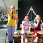 Unsere „Großen“ ließen es noch einmal richtig krachen. Mit vielen Trommelrhythmen und Gesang, kleinen Spielszenen und Tanz ließen sie die vier Jahre Revue passieren. Schön war’s!
