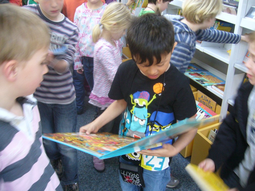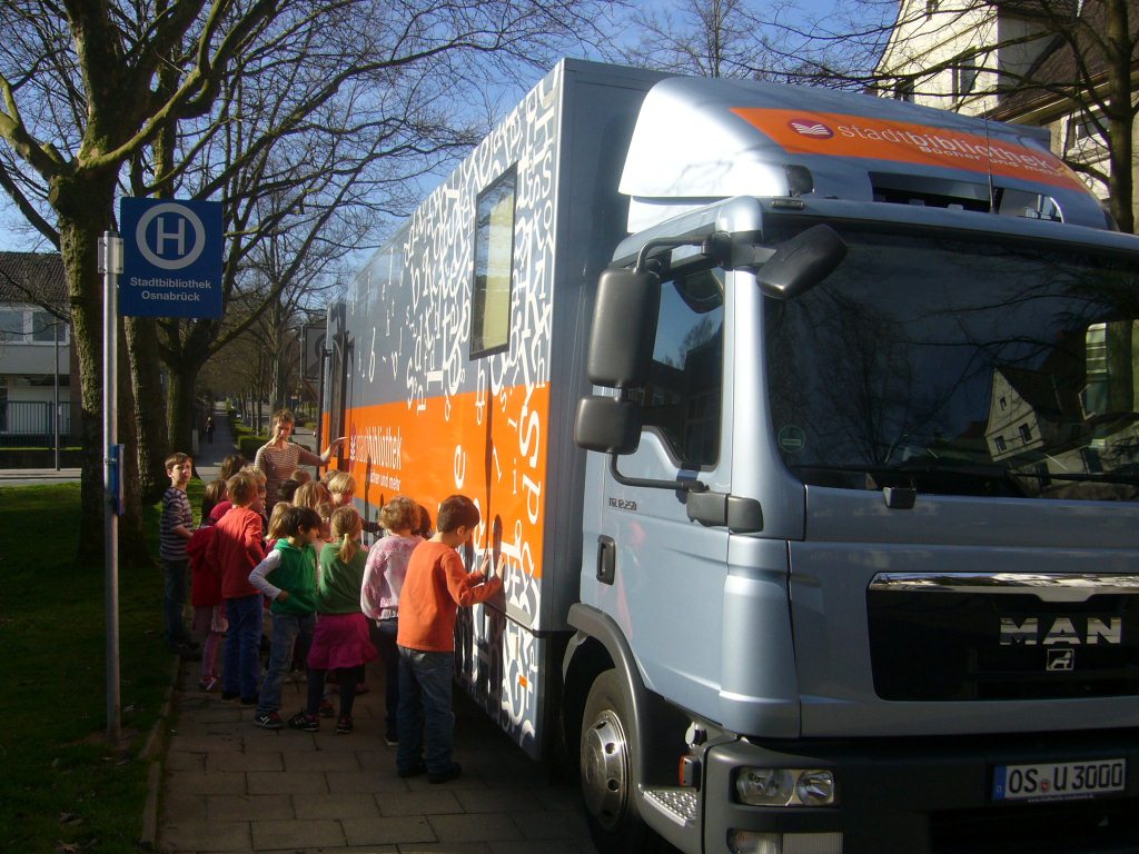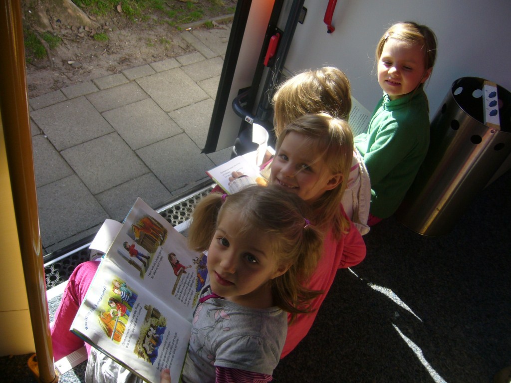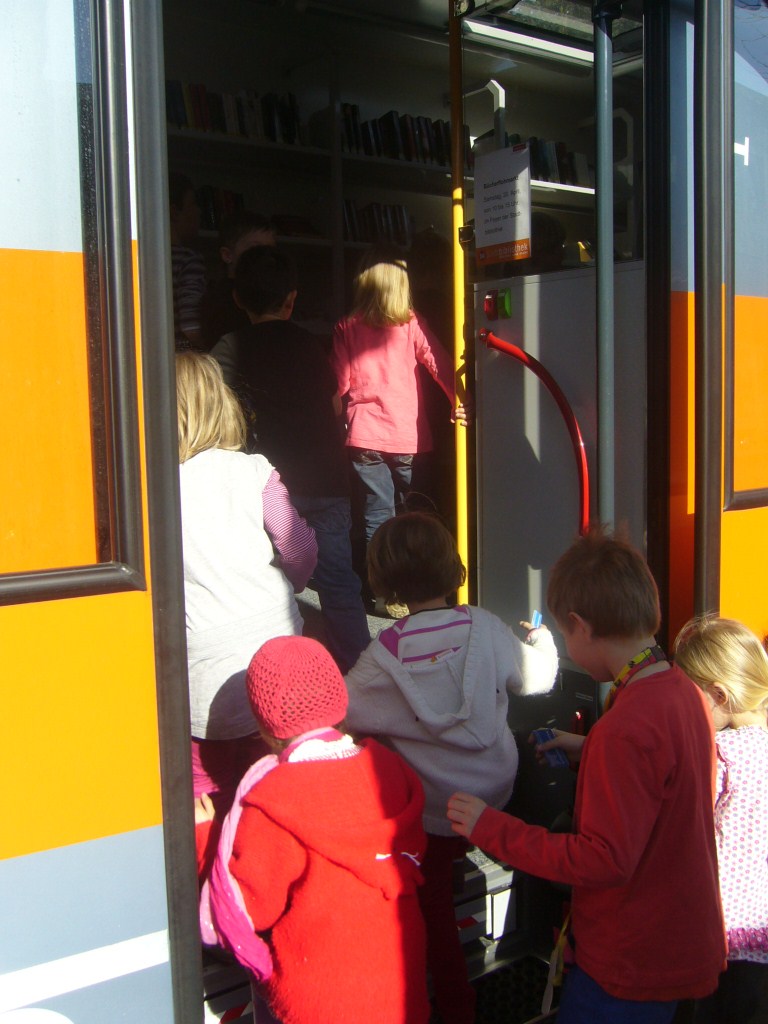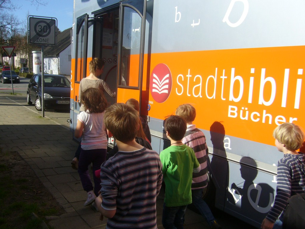 Danach gingen wir zum „Bücherbus“ und schnell hatten die ersten Kinder Bücher gefunden, die sie ausleihen wollen.
