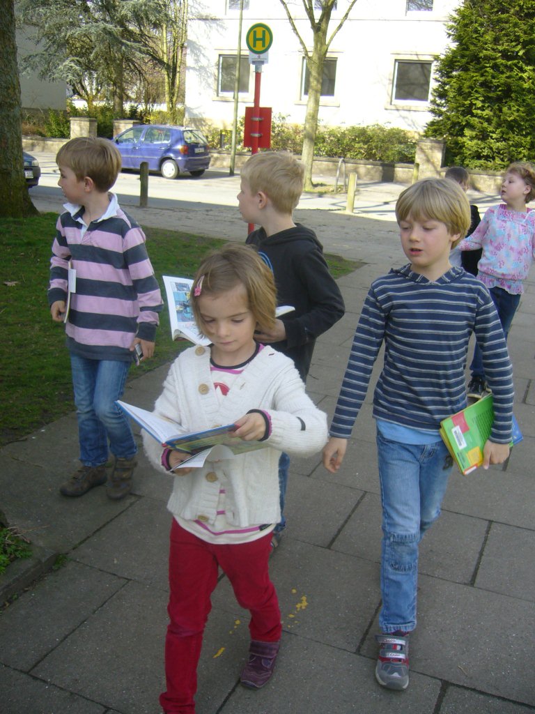 Armin: „..und wo können wir jetzt lesen?“ …mit aufgeklappten Büchern ging es lesend zur Klasse zurück!