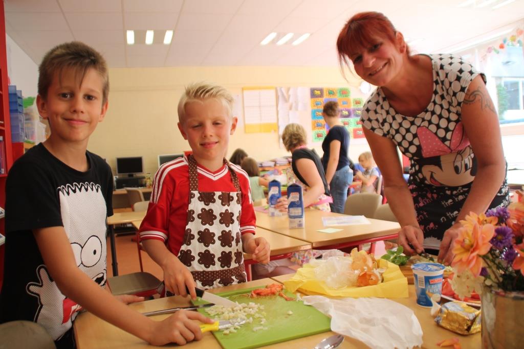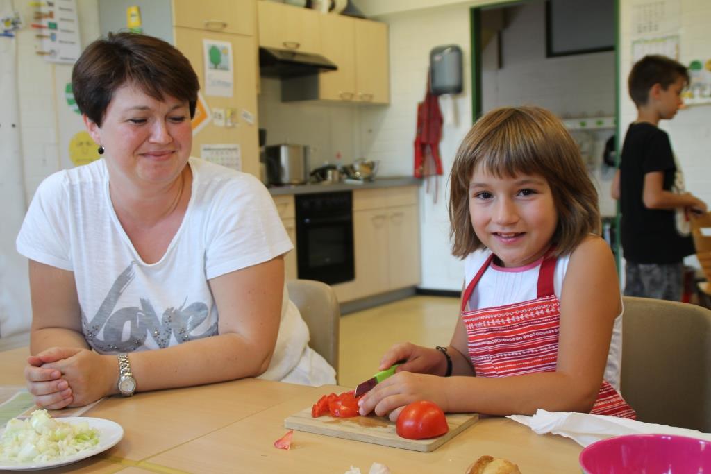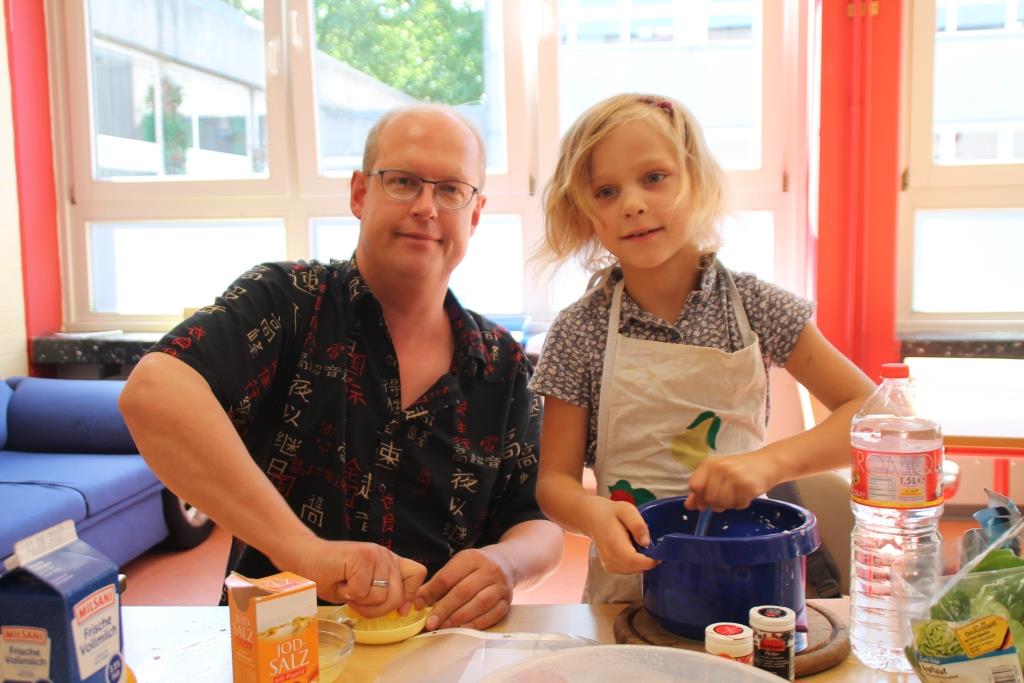 Heute wurden geschnippelt, gerührt, püriert, gedünstet und gekocht. In kleinen Gruppen haben wir viele kleine Fitmacher-Speisen mit reichlich Obst und Gemüse zubereitet.