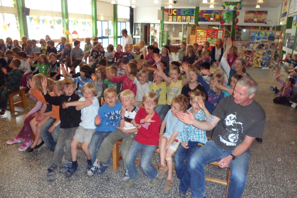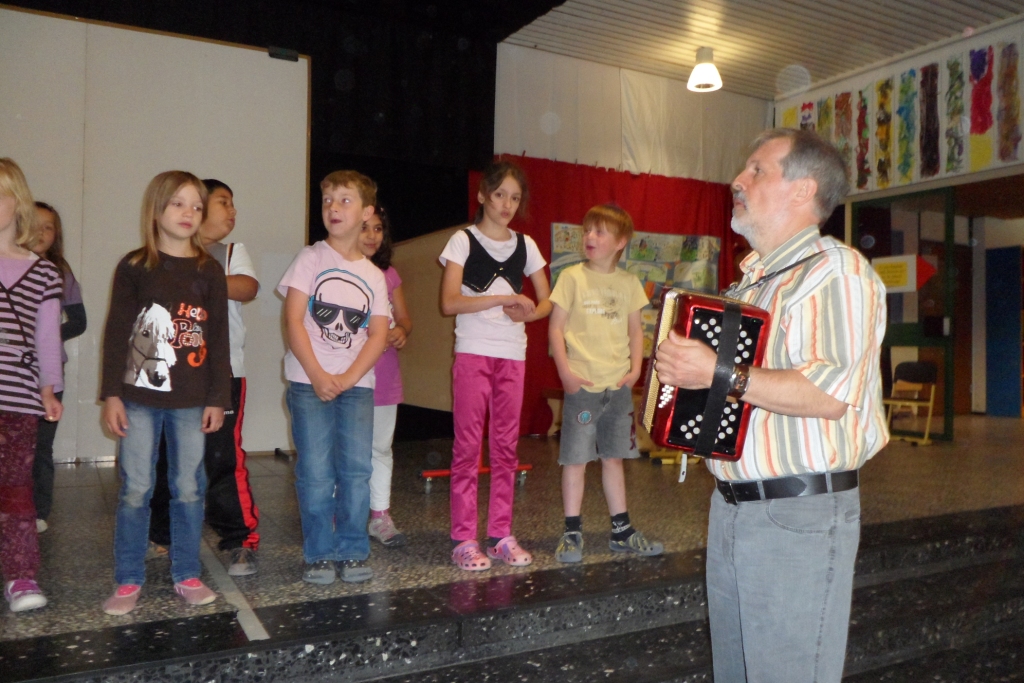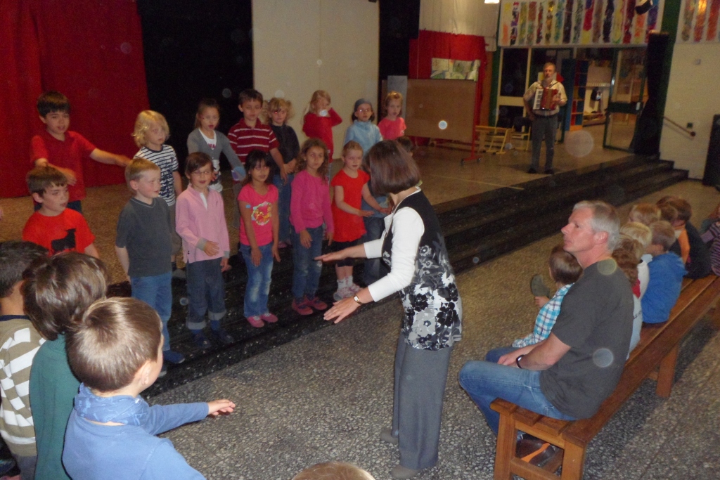 Kurz vor Abschuss der Schuljahres stellten die ersten und zweiten Klassen vor, was sie im Unterricht „Vokales Musizieren“ mit Herrn Prof. Holland-Moritz, Frau Völkel und deren Team von der Fachhochschule erarbeitet haben. Da auch alle anderen tatkräftig einbezogen wurden, war es für alle ein besonders schönes musikalisches Erlebnis.