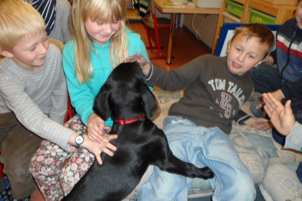Hunde waren das Thema der Klasse 2a und deshalb freuten wir uns besonders, dass Victors Vater uns mit Oskar, dem neuen Familienhund, in der Schule besuchte. Oskar ist noch ein Welpe und sehr verspielt, wie man in der Bildergalerie sehen kann. Victor und sein Vater berichteten uns eine Menge über den Tagesablauf mit Oskar und die Veränderungen, die ein Hund in eine Familie bringt. Wir erhielten außerdem nützliche Informationen zur Ernährung, Erziehung und Pflege von Hunden.