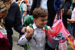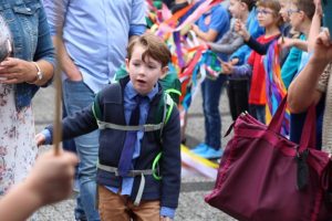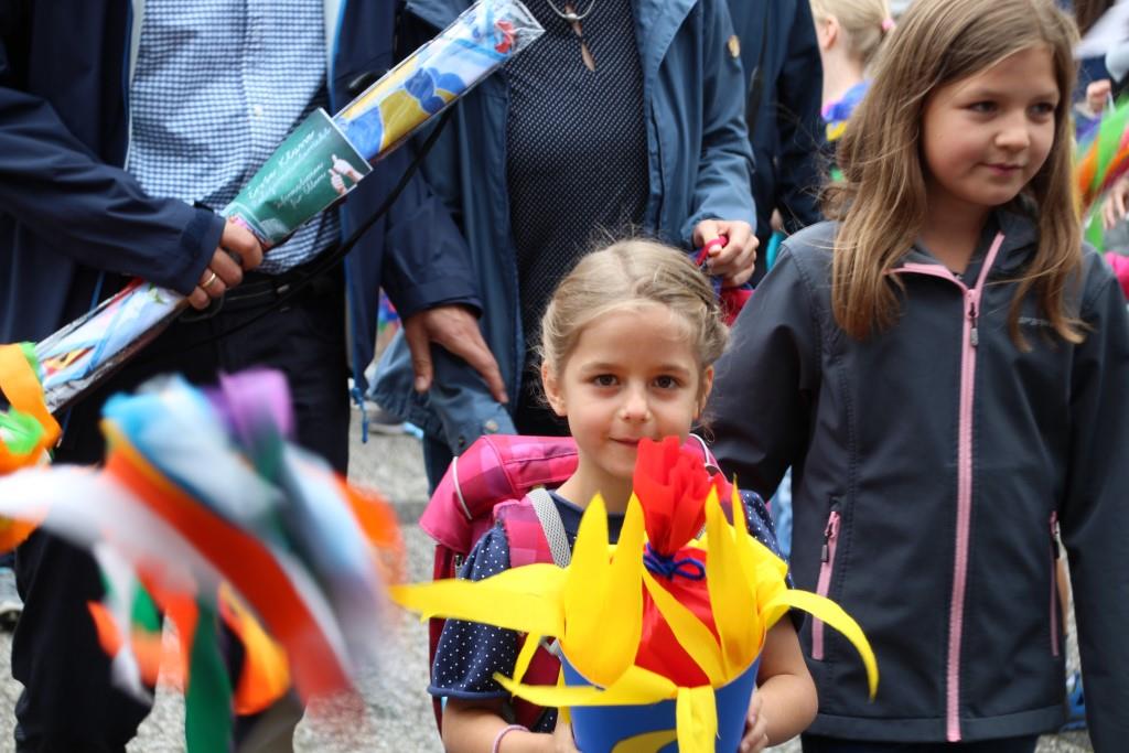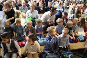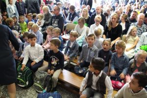 Nach einem bewegenden Gottesdienst in der Kirche St.Barbara gingen unsere neuen Schulkinder durch ein buntes Begrüßungsspalier in die Aula der HSS.
