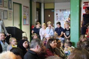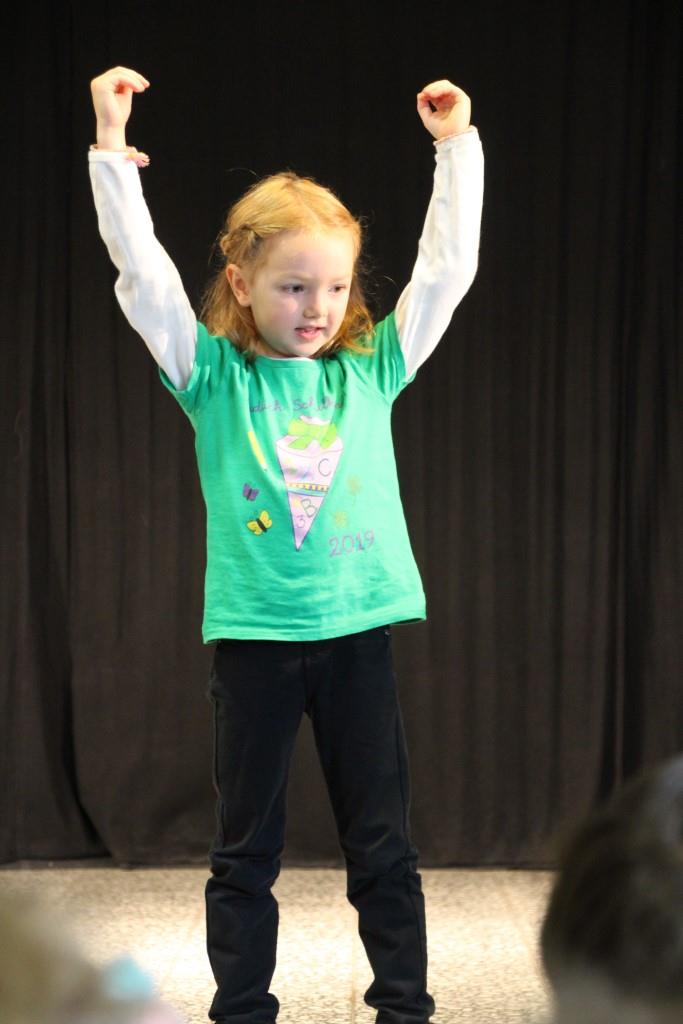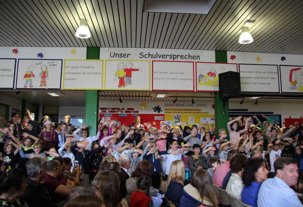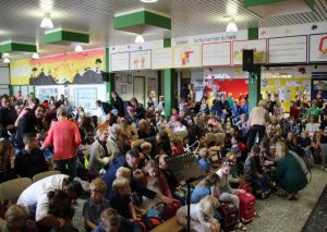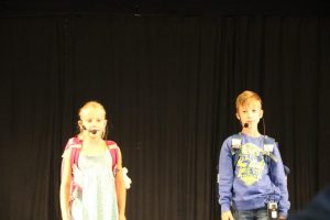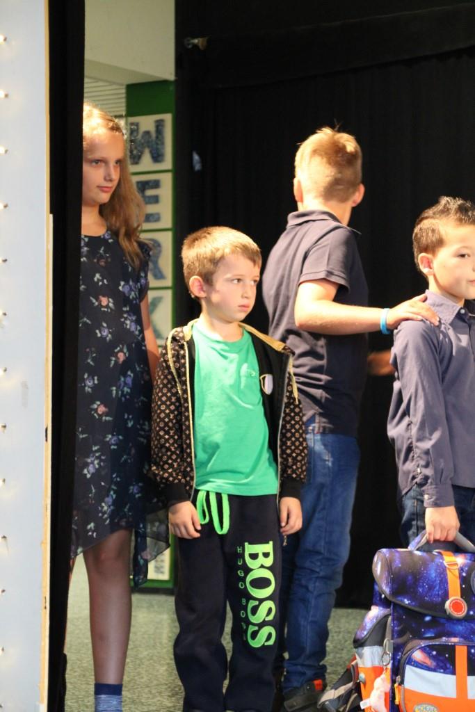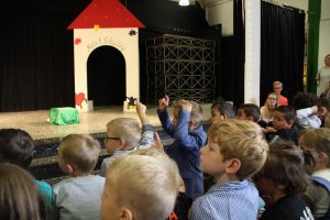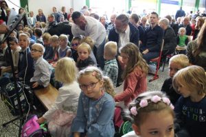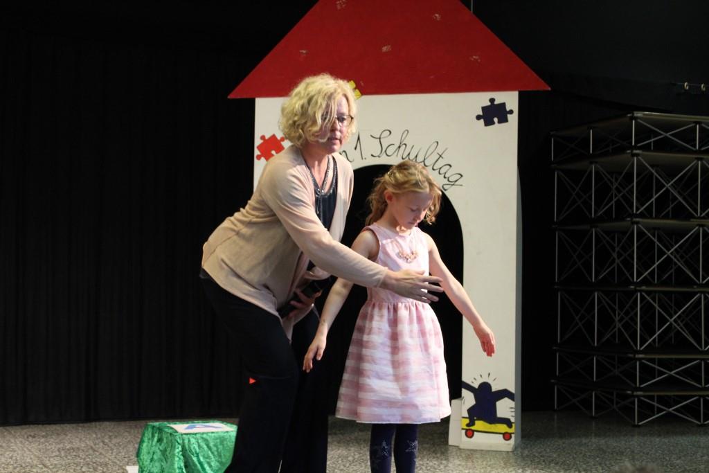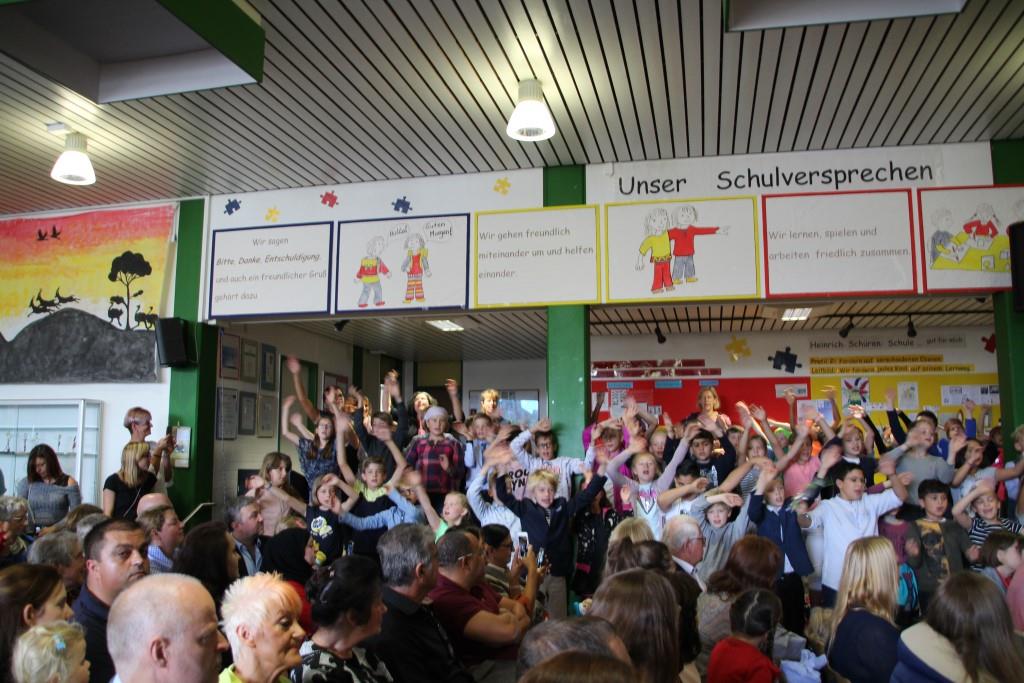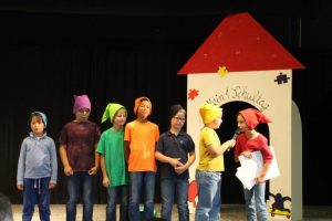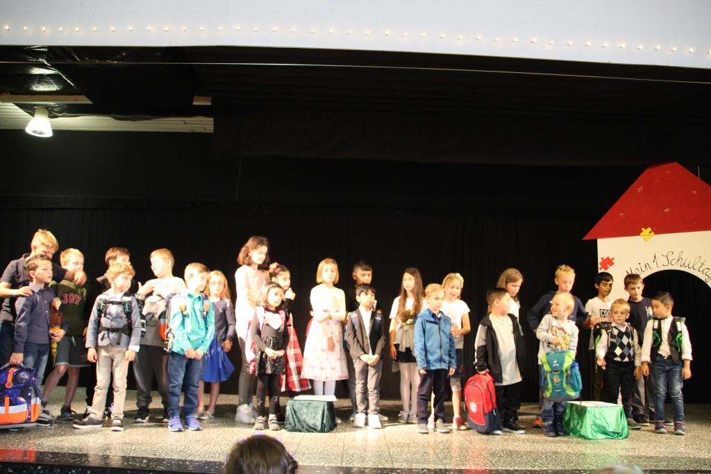 Es folgte eine sehr musikalische Einschulungsfeier. Es begann mit unserem Schullied „Schule ist mehr“ und nach einer kurzen Begrüßung folgte ein Stück der 3a und 3b, „die verschwundenen Zahlen“. Hasen und Zwerge hatten den Schulkindern die Zahlen und Buchstaben gestohlen, aber am Ende ging alles gut aus!