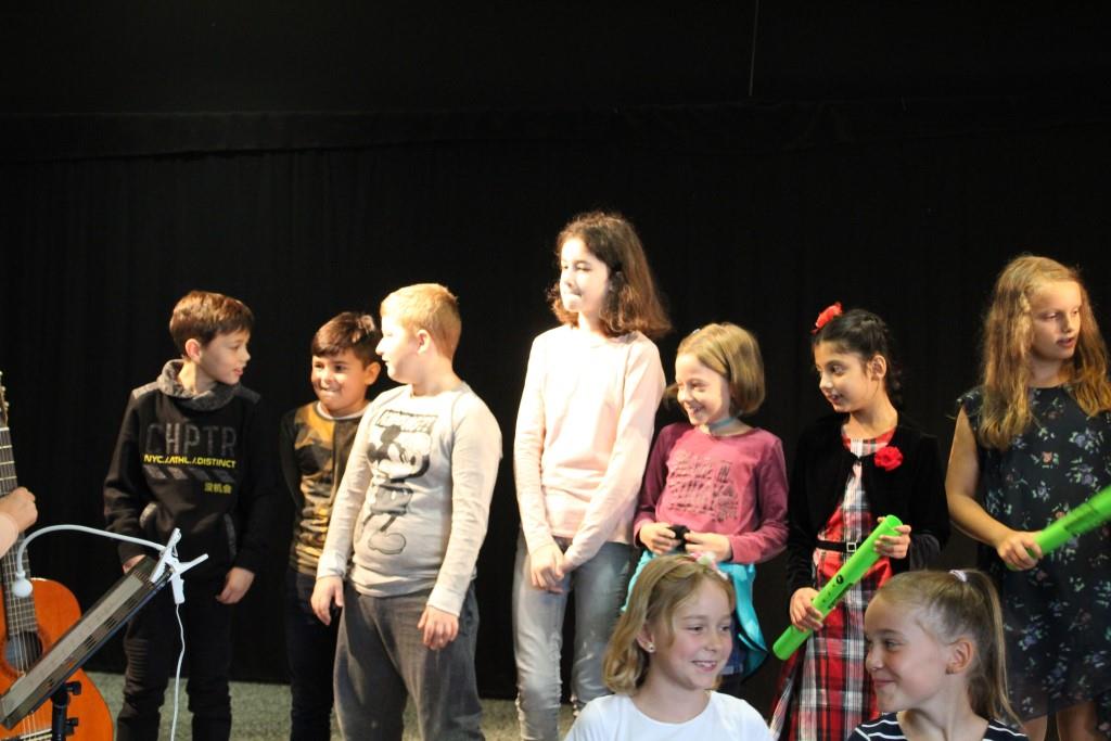 Zum Abschluss sang die Klasse 4b ein Lied mit Boomwackern untermalt.