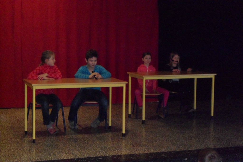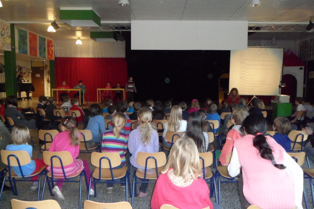 Ein schlichtes Bühnenbild und wenige Requisiten, mehr stand den Kindern nicht zur Verfügung, es kam allein auf eine möglichst