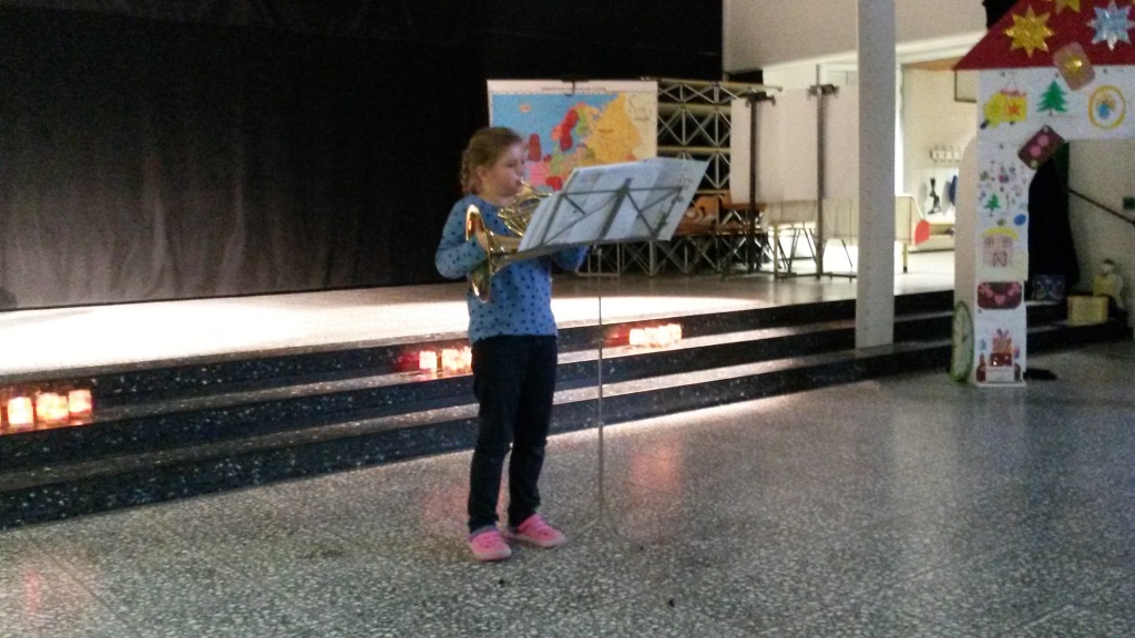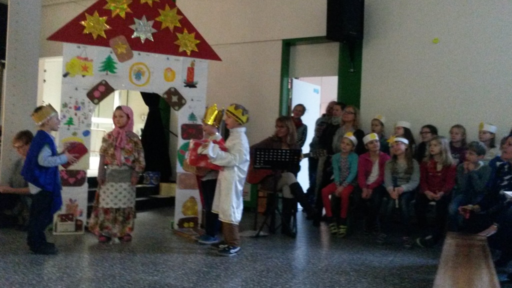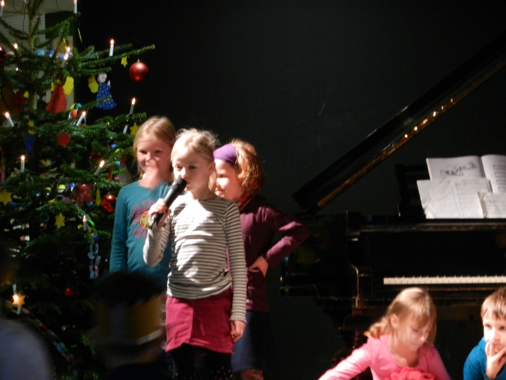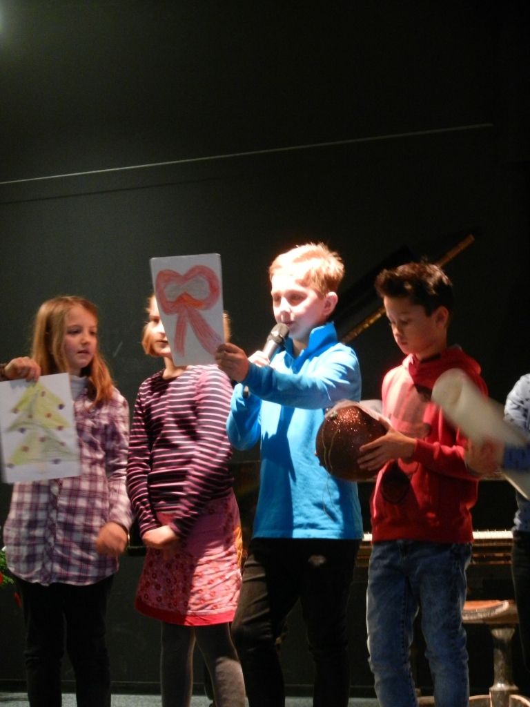 Deutsche Weihnachtsbräuche und Gedanken zur Weihnachtszeit ergänzten dann unsere Fahrt durch Europa. Schön war’s! Wieder führten die Wichtel durch das Programm, der Chor sang kräftig bei den gemeinsamen Liedern mit und viele mutige Kinder spielten uns auf ihren Musikinstrumenten weihnachtliche Stücke vor.