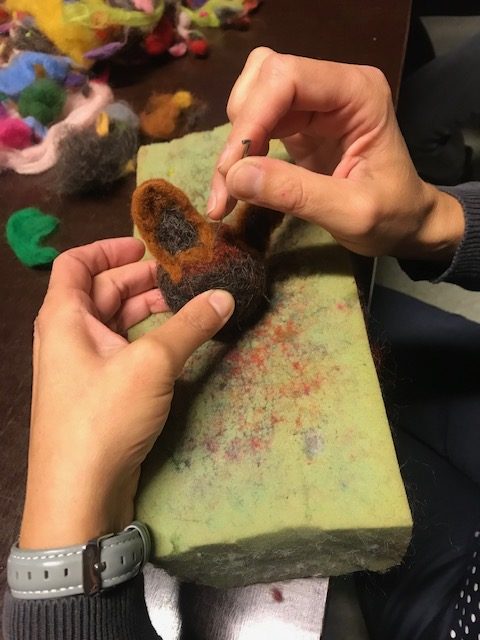 Das Trocken- und Nassfilzen wurde fleißig erprobt und am Ende des Nachmittags gingen alle stolz mit ihren Ergebnissen nach Hause.