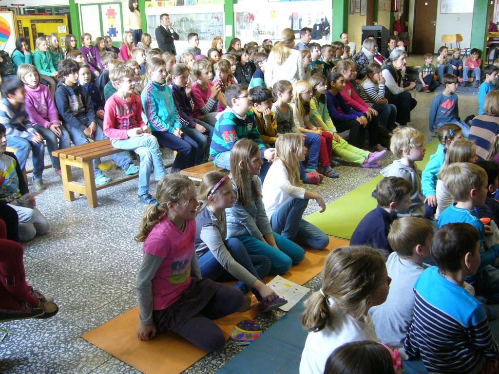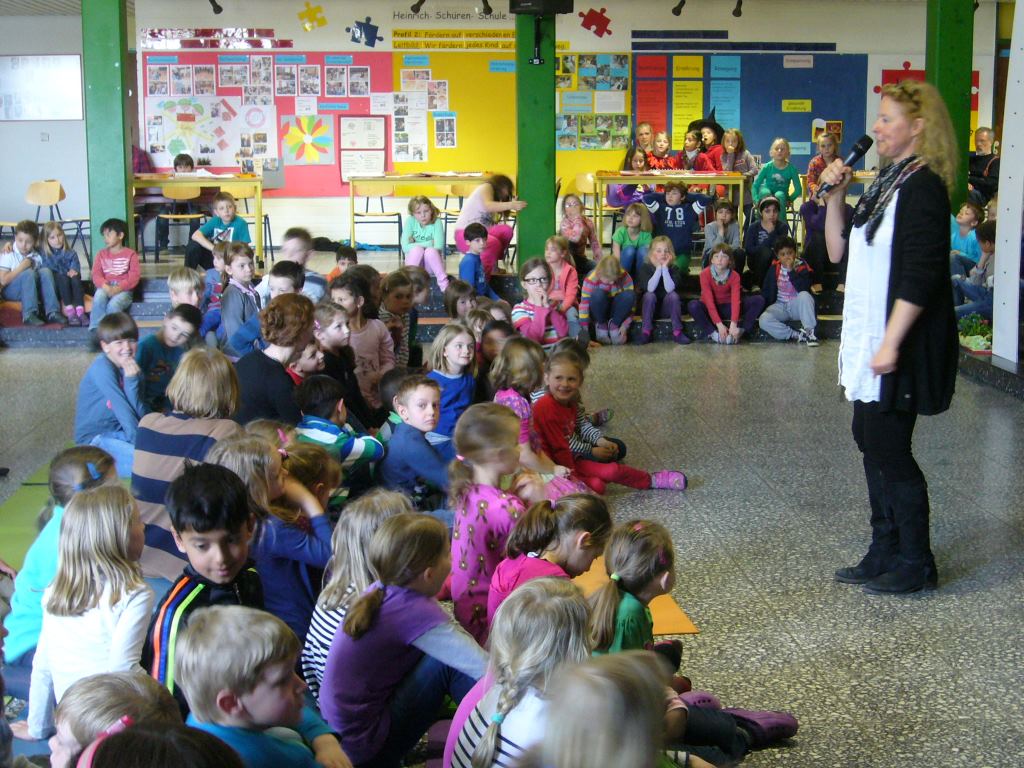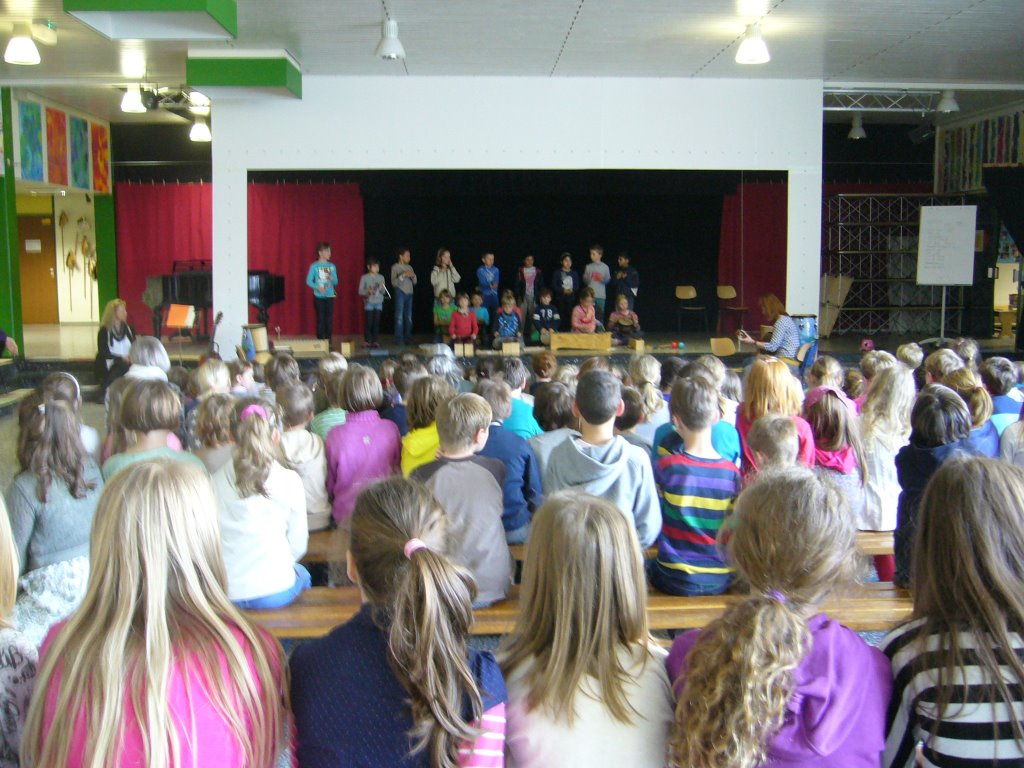 Endlich Osterferien! Das muss gefeiert werden. Alle Klassen leisteten tolle Beiträge, so dass schnell Ferien- und Frühlingsstimmung aufkam. Ob Gedichte, Lieder, instrumentelle Stücke oder ganze Klanggeschichten, ein kunterbuntes fröhliches Programm, das vielen Menschen ein Lächeln entlockte. Unser neuer Chor gab sein Debüt mit verschiedenen rhythmisch-starken Stücken und einem Rap. Am Ende sang die ganze Aula, als ein dreistimmiger Frühlingskanon angestimmt wurde. Herzlichen Dank an alle!!! Genießen Sie die unterrichtsfreie Zeit und FROHE OSTERN!