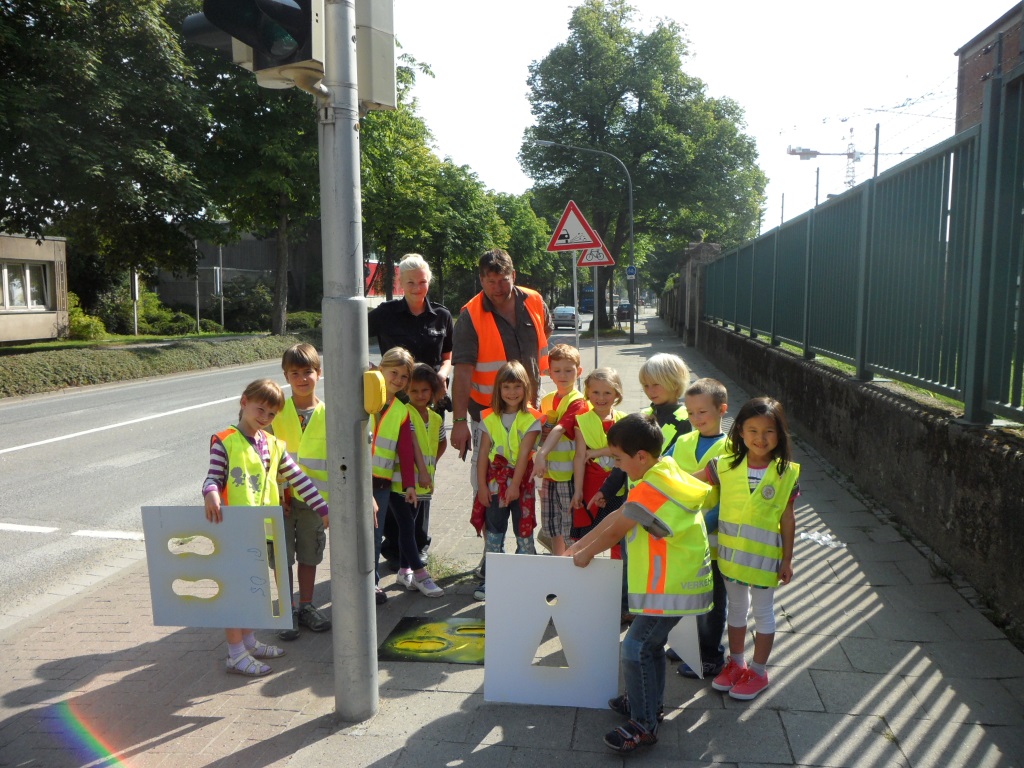 Im Rahmen des Sachunterrichts (Mobilität) werden Schulwege abgegangen und das richtige Verhalten als Fußgänger eingeübt. Auch alle Eltern sollten sich die Zeit nehmen die direkte Umgebung ihres Wohnortes bis zur Schule mit ihren Kindern wiederholt zu erkunden.