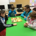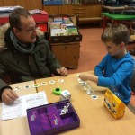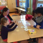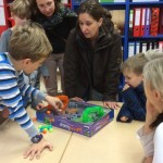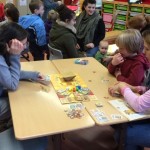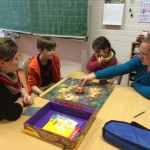 Am Freitag, den 27.11.2015, fand im Rahmen der Gesunden Stunde unser Spielenachmittag in der Schule statt. Um 16:00 Uhr waren dann nicht nur Eltern mit ihren Kindern, sogar auch Großeltern gekommen. Nach der Begrüßung durch die Schulleitung und Frau Tegeder-Perwas, die das Projekt „Gesunde Stunde“ koordiniert, strömten unsere rund 180 Gäste aus, um in der Aula und dem rechten Trakt des Schulgebäudes in den Klassen verschiedene Gesellschaftsspiele auszuprobieren. Kleine wie große Spiele, aber auch kleine wie große Teilnehmer fanden sich in Gruppen zu Brett-, Bewegungs-, Rate- oder Logikspielen zusammen. Es wurde ausprobiert, getüftelt und vielleicht auch so manches Mal geschummelt? Natürlich wurde auch gerne von den Experten geholfen oder die Spielregel gezeigt. Netterweise hatten sich viele Eltern vorher bereit erklärt, sich mit einem Spiel vertraut zu machen und es an diesem Nachmittag zu erklären. Die Sparkasse, aber auch die Presse waren mit von der Partie, um zusehen, wie solch ein Projekt angenommen und auch finanziert wird. Nach ca. 90 Minuten fanden sich alle Teilnehmer in der Aula zusammen, dort zog ein Glückselfe drei Gewinner, die ein Spiel mit nach Hause nehmen durften.