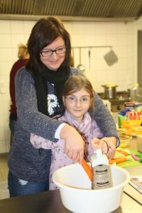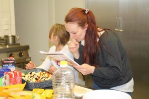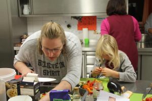 Das Abendessen ist ein kleiner Kochkurs: Alle Teilnehmer bereiten das Abendessen gemeinsam vor! Unter Anleitung des Küchenteams des Schullandheims wird geschnitten und gerührt, abgeschmeckt und probiert. Das leckere Ergebnis wird anschließend im Speisesaal verspeist.