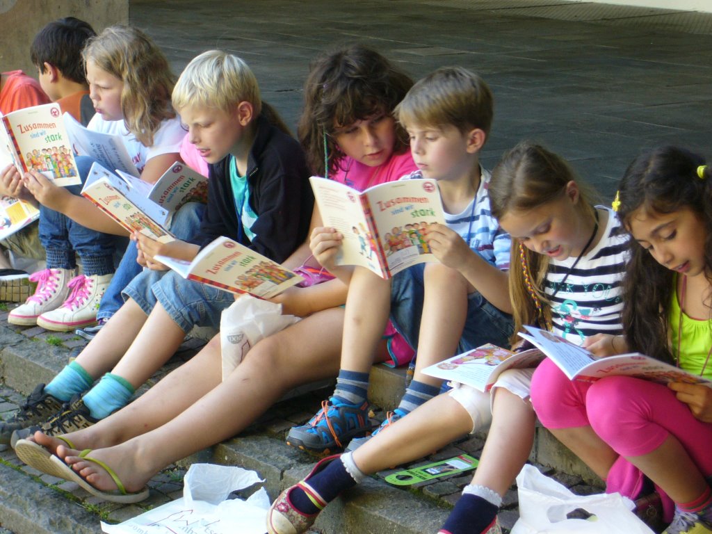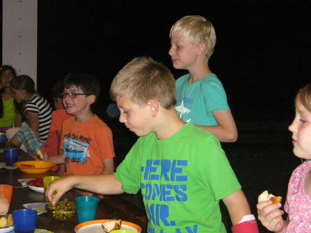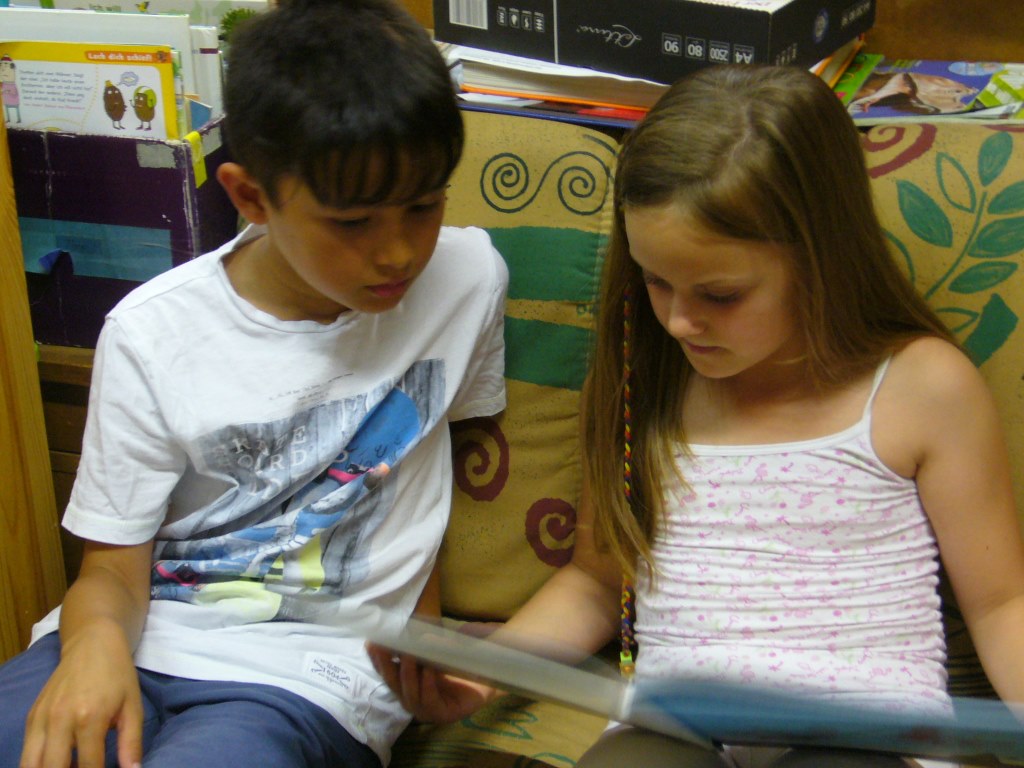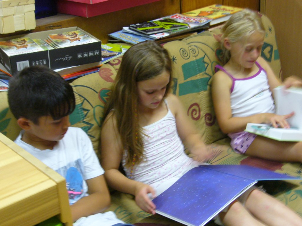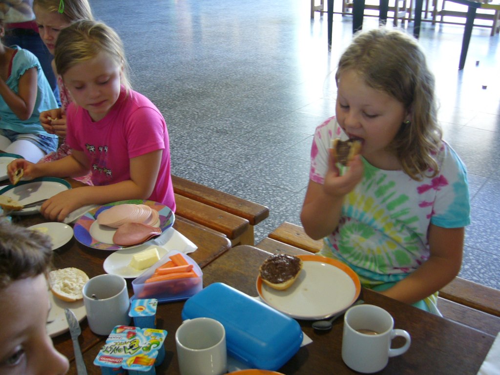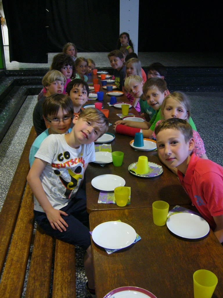 In der Schule angekommen halfen alle schnell mit den Tisch zu decken und das große Abendbuffet aufzubauen. Danach hatten wir Zeit zum Spielen und Lesen. Nach einer Gutenachtgeschichte dauerte es noch ziemlich lange, bis die letzten Kinder sich entschlossen hatten, Augen und Mund zu schließen. Nach einer kurzen, aber spannenden Nacht, waren die ersten Kinder schon um kurz nach 6 Uhr wach. Sie schnappten sich ihr Buch und ließen die übrigen Kinder noch eine Stunde schlafen.
