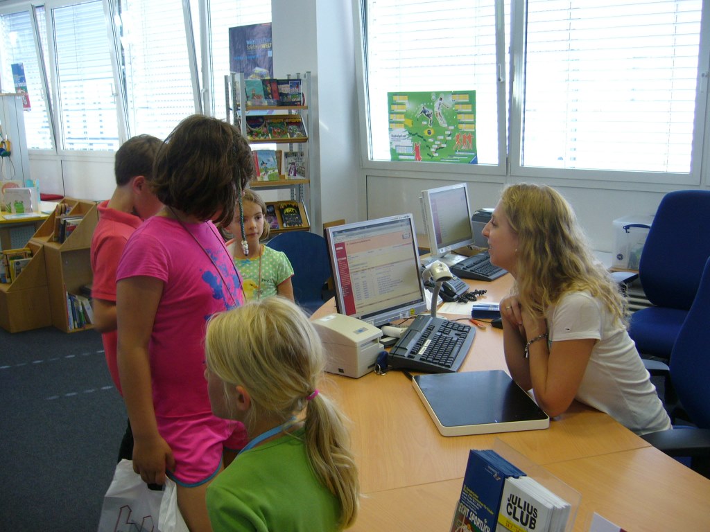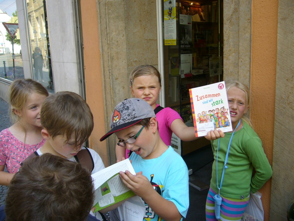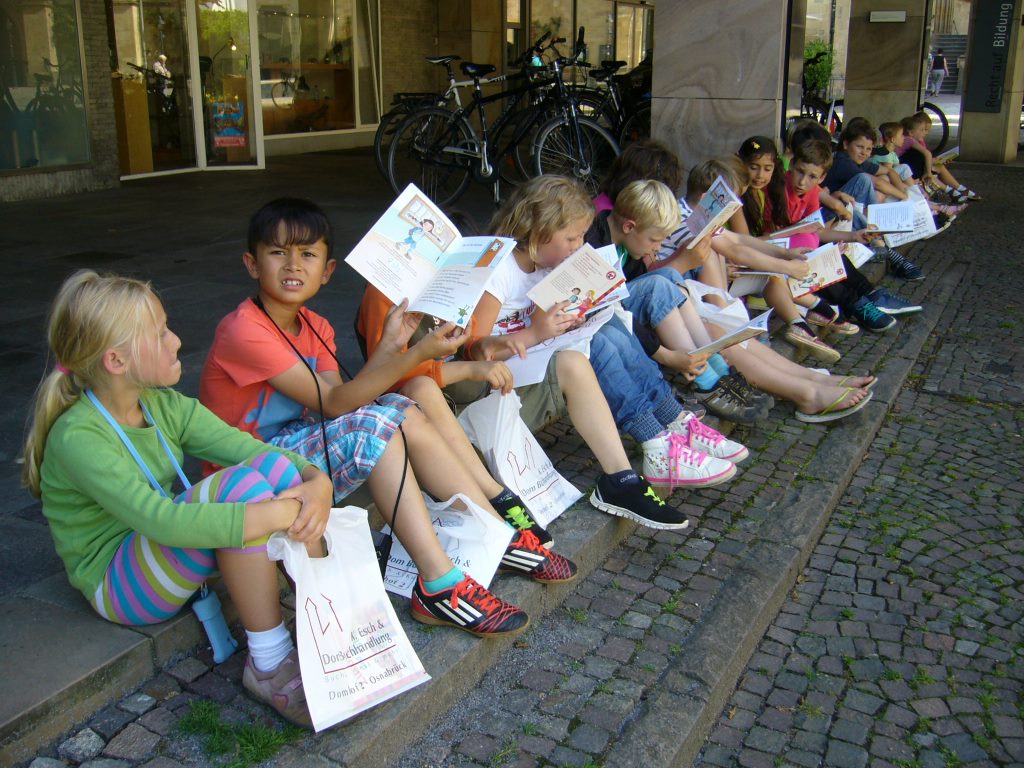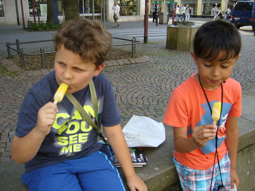 Bei schönstem Hochsommerwetter machten wir uns zu Fuß auf den Weg in die Stadt. Auf unserem Programm stand der Besuch einer Buchhandlung und der Stadtbibliothek. Über den ersten Hunger rettete uns ein Eis, so gestärkt reichten die Kräfte für den Rückweg. Gerade als wir in unseren Bus einstiegen, regnete es kurz und kräftig.