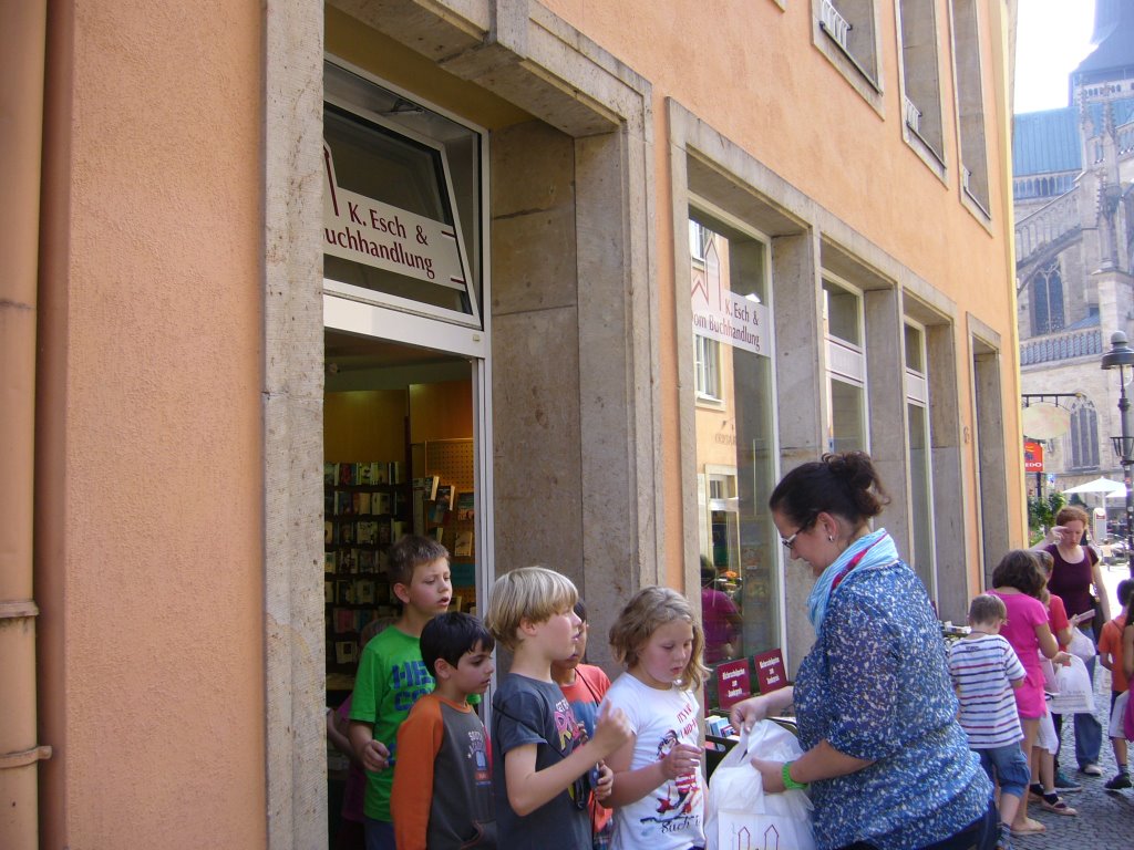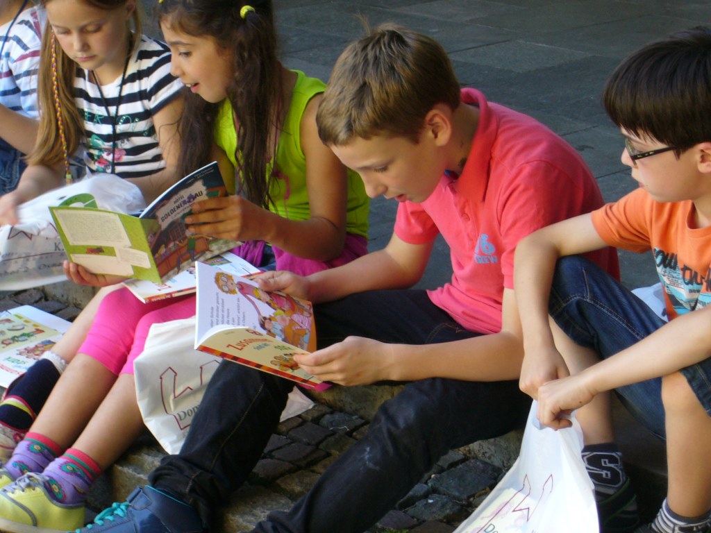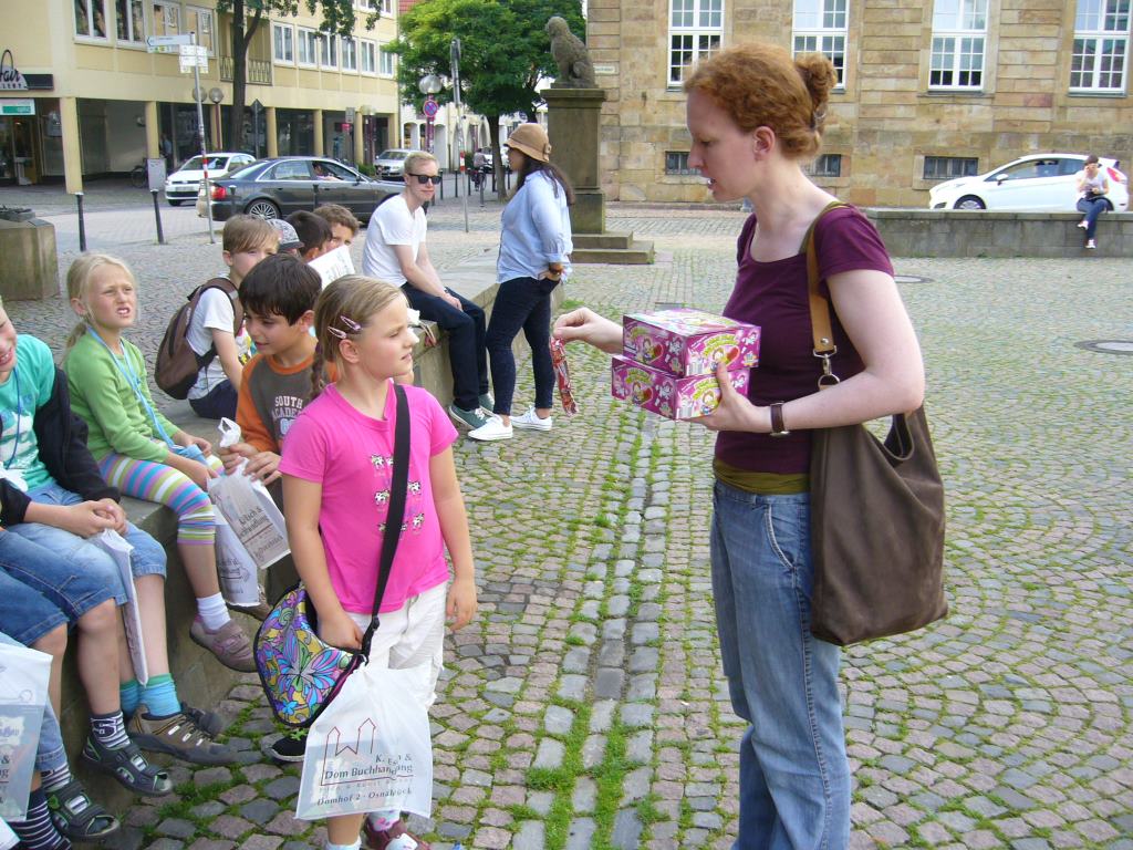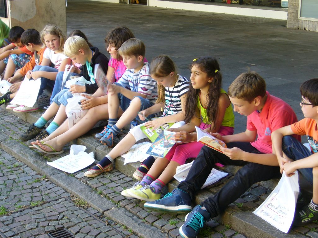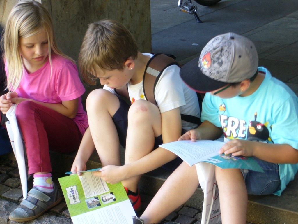 Bei schönstem Hochsommerwetter machten wir uns zu Fuß auf den Weg in die Stadt. Auf unserem Programm stand der Besuch einer Buchhandlung und der Stadtbibliothek. Über den ersten Hunger rettete uns ein Eis, so gestärkt reichten die Kräfte für den Rückweg. Gerade als wir in unseren Bus einstiegen, regnete es kurz und kräftig.