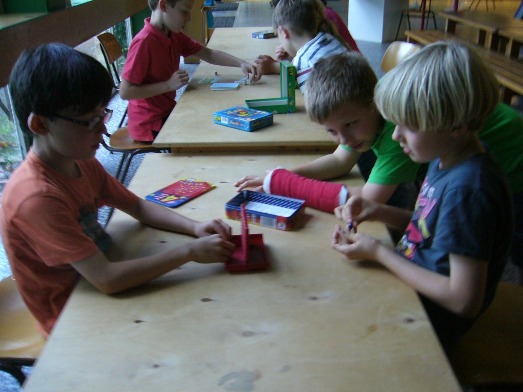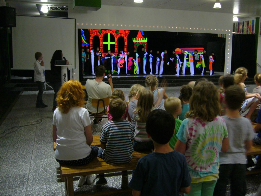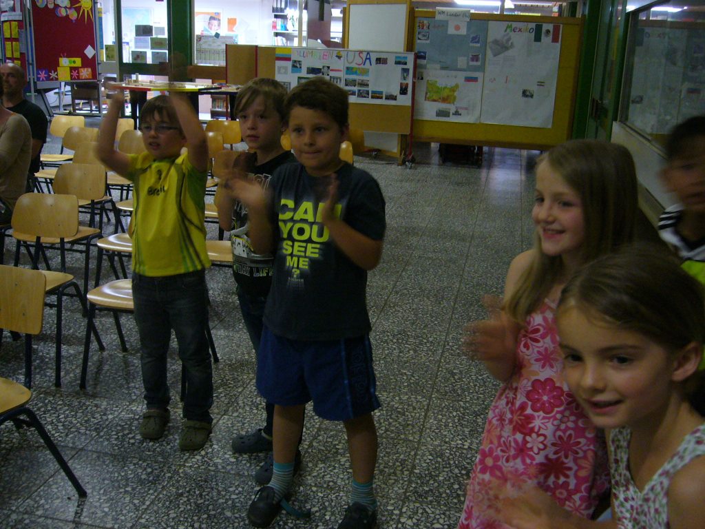 Nachdem alle Sachen wieder eingepackt waren, stand heute in der ersten Schulstunde „Gemeinsames gemütliches Frühstücken“ auf dem Programm. In der zweiten Stunde durften wir „Pushy“ spielen und in der dritten Stunde arbeiteten wir in unserem „Findefuchs“-Leseheft. Zum krönenden Abschluss gab es in der vierten Stunde die Schulaufführung der Schwarzlichtgruppe vom Hort.