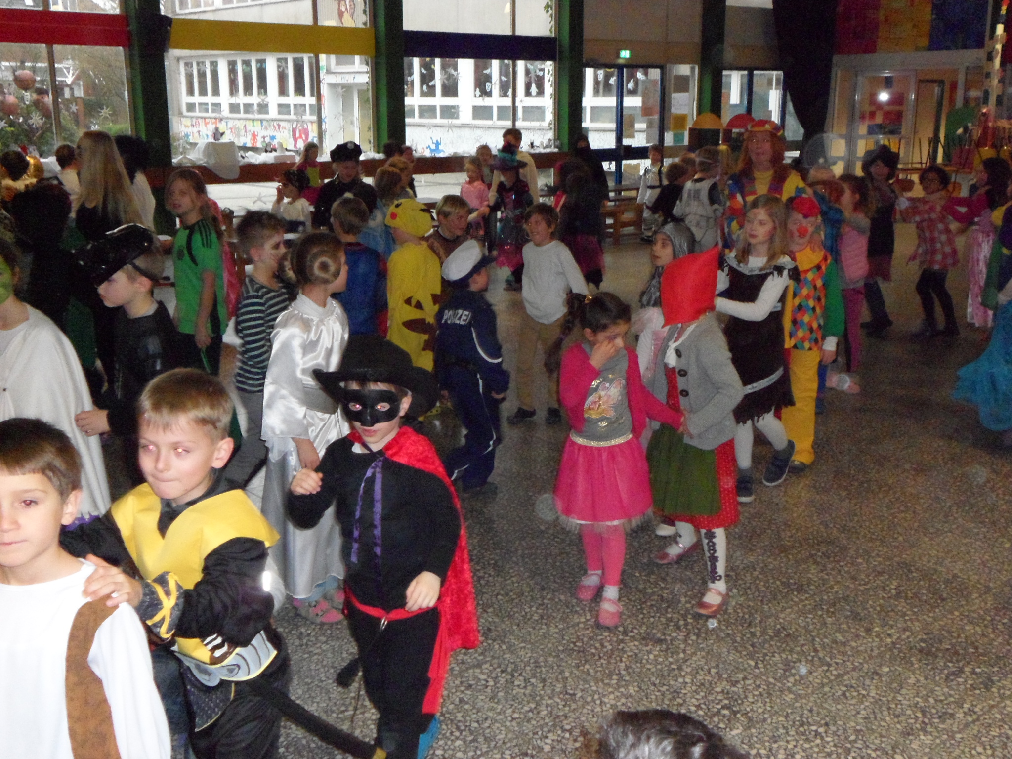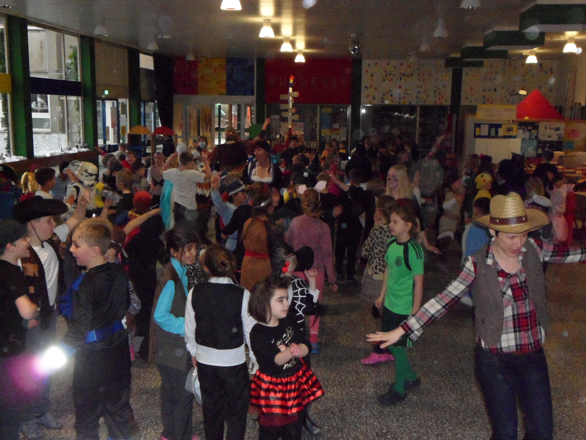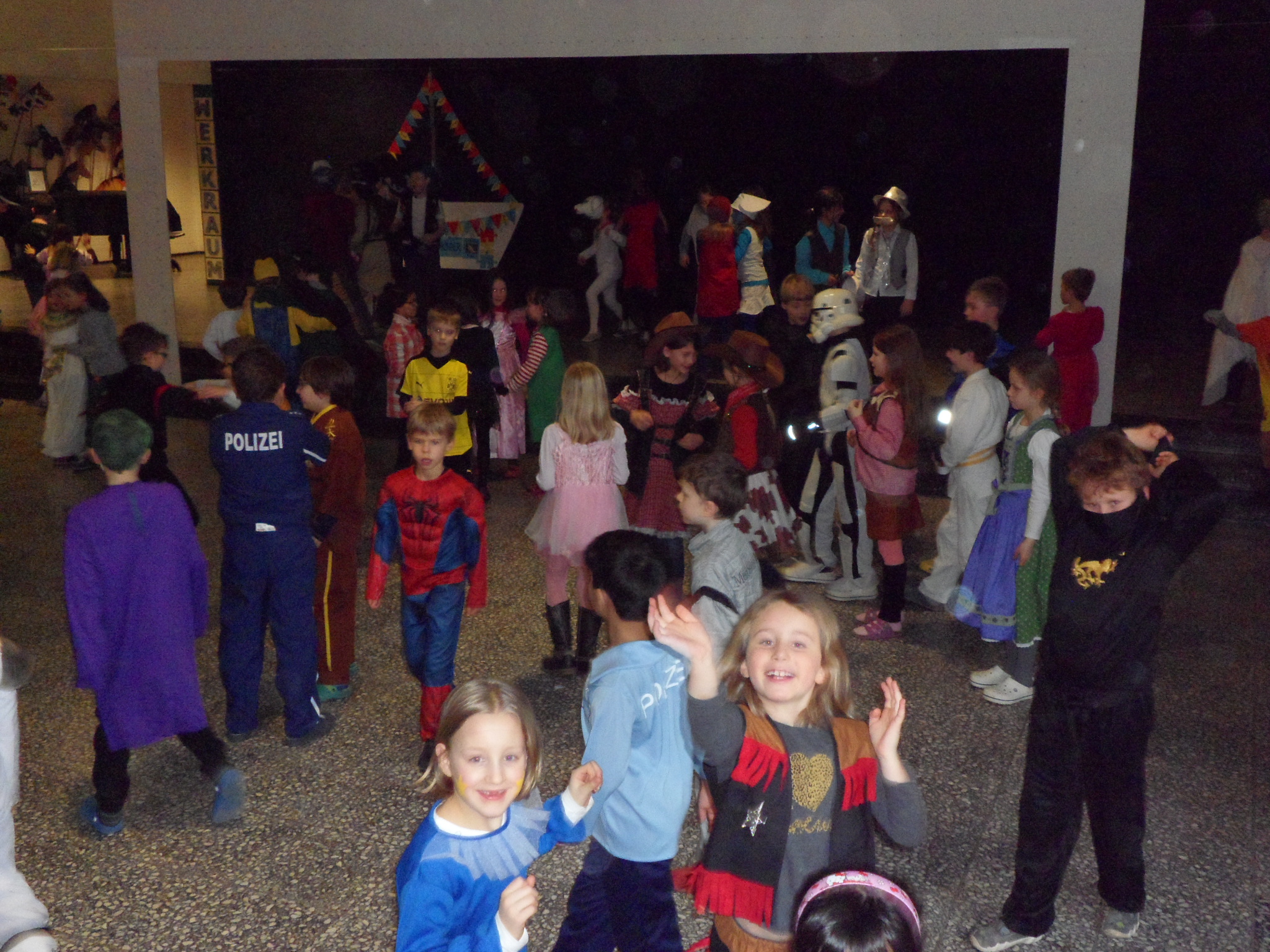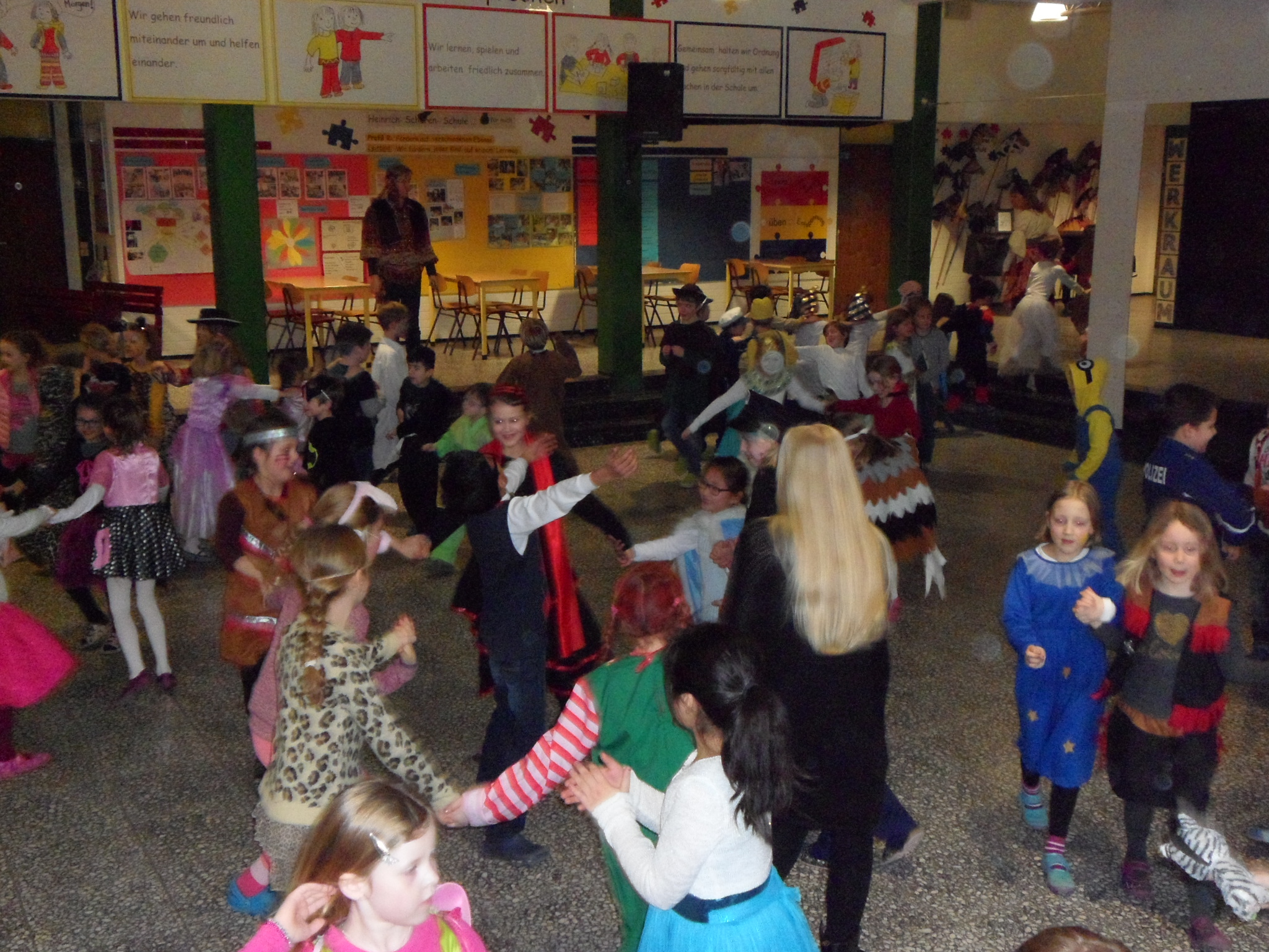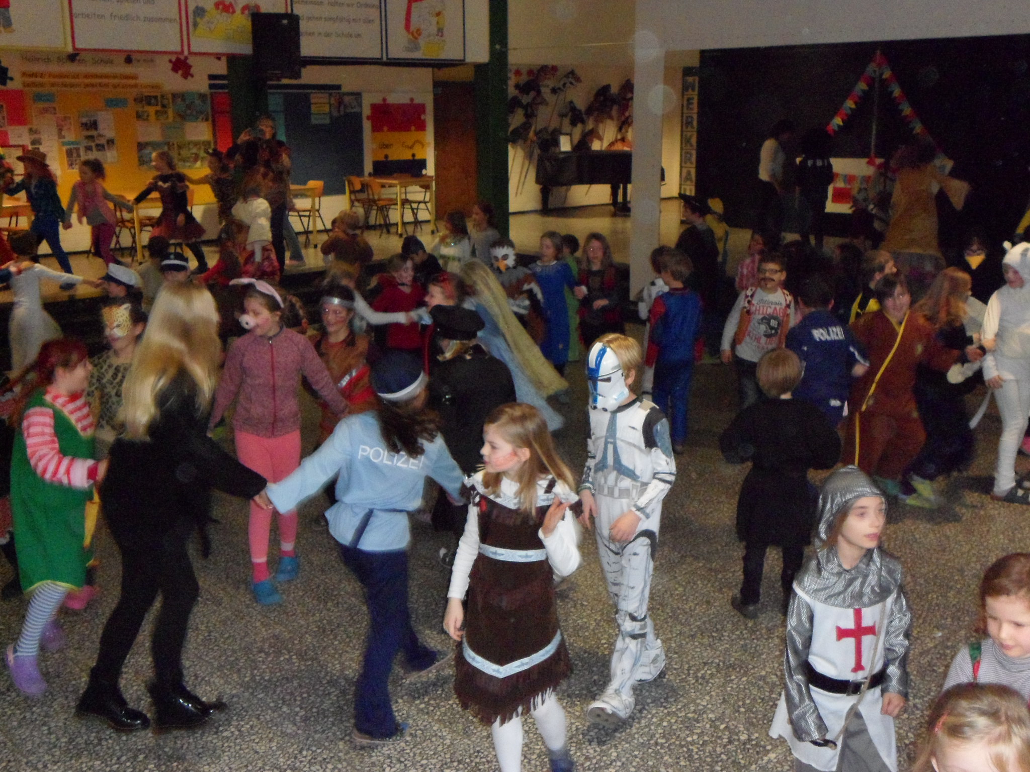 Am 8. Februar hieß es wieder HELAU in der Heinrich-Schüren-Schule und jede Menge Prinzessinnen, Cowboys, Indianer, Tiere und andere tolle Wesen und Figuren brachten ordentlich Stimmung in die Schule! Neben verschiedenen Aktivitäten in den Klassenräumen gab es leckeres Essen und eine riesige Polonaise durch die ganze Schule. Anschließend wurde ausgelassen in der Aula getanzt und gesungen. Außerdem konnten sich die Kinder in der Sporthalle mit Kleinmaterialien und in einer speziell aufgebauten Bewegungslandschaft austoben. Insgesamt war es wieder ein gelungener Tag in der Schule, bei dem alle viel Freude hatten.