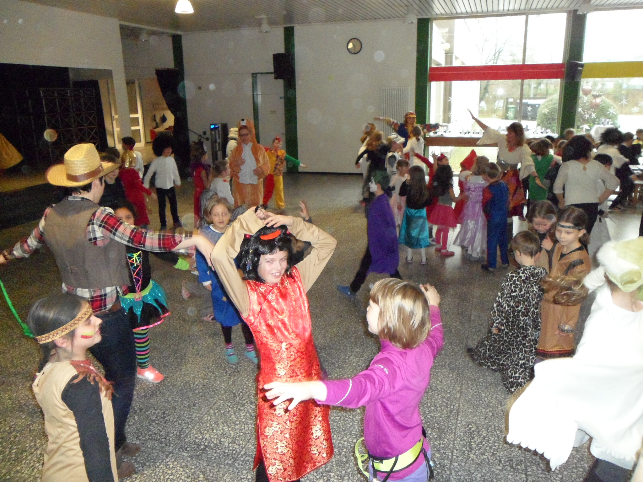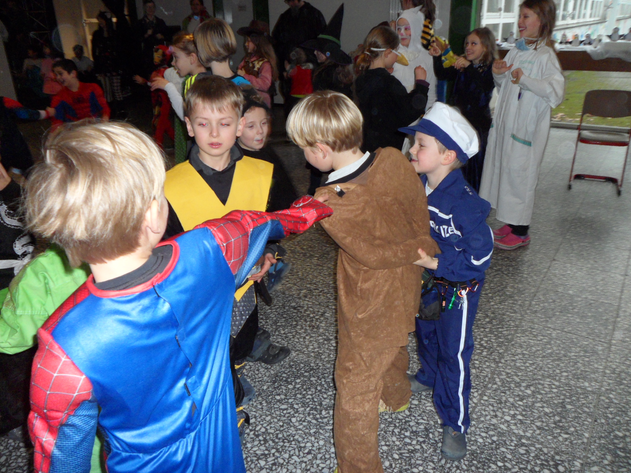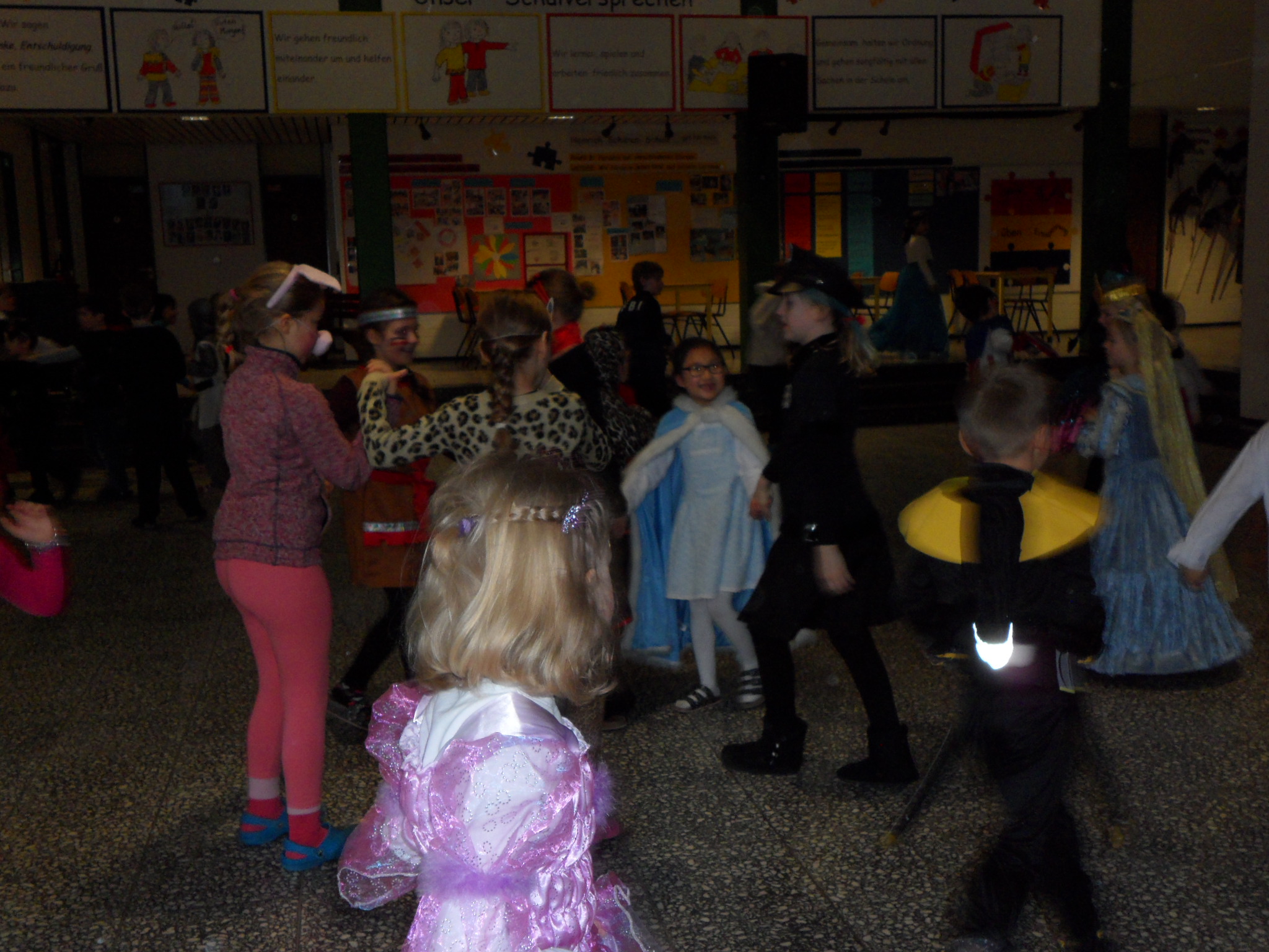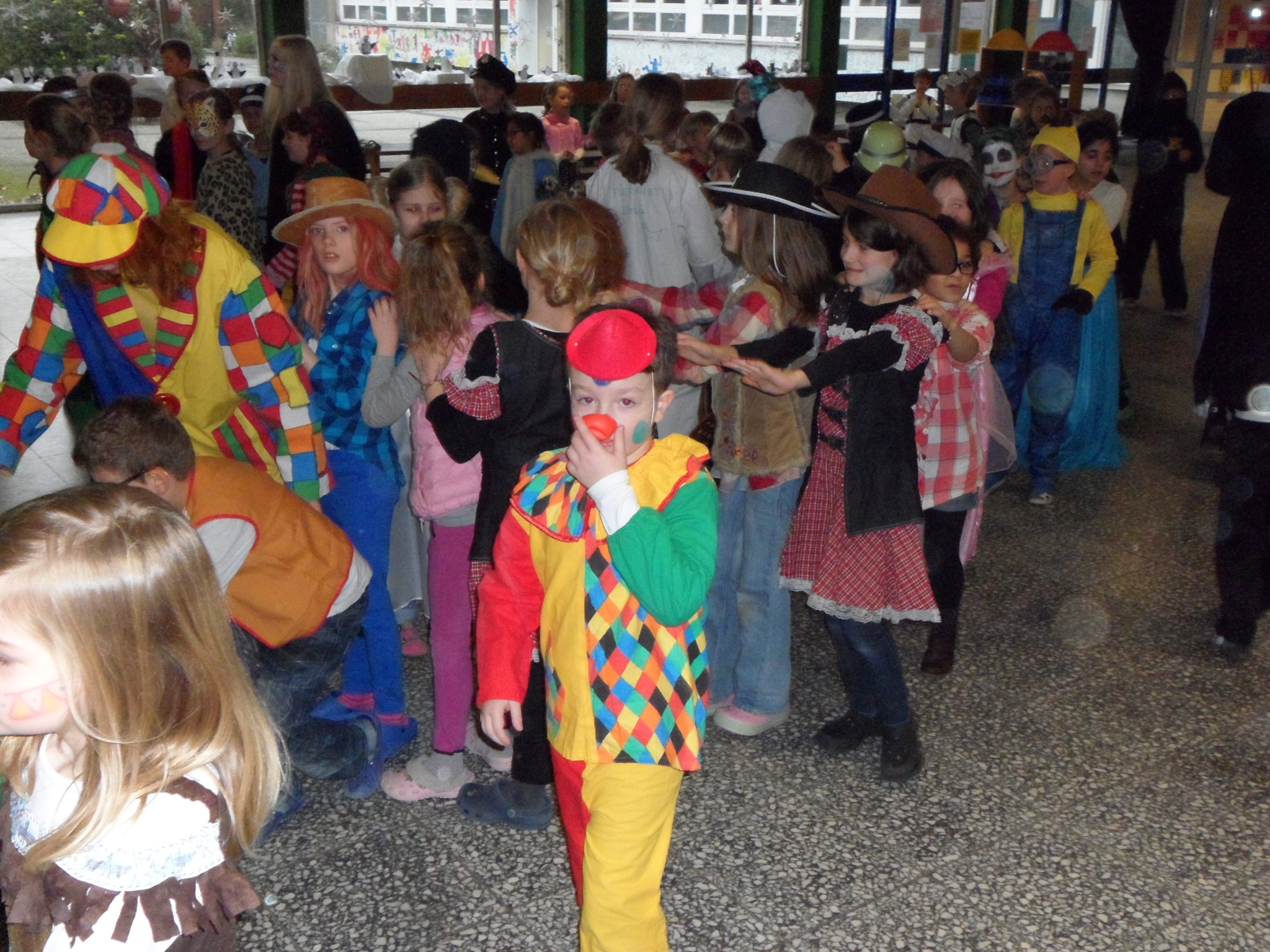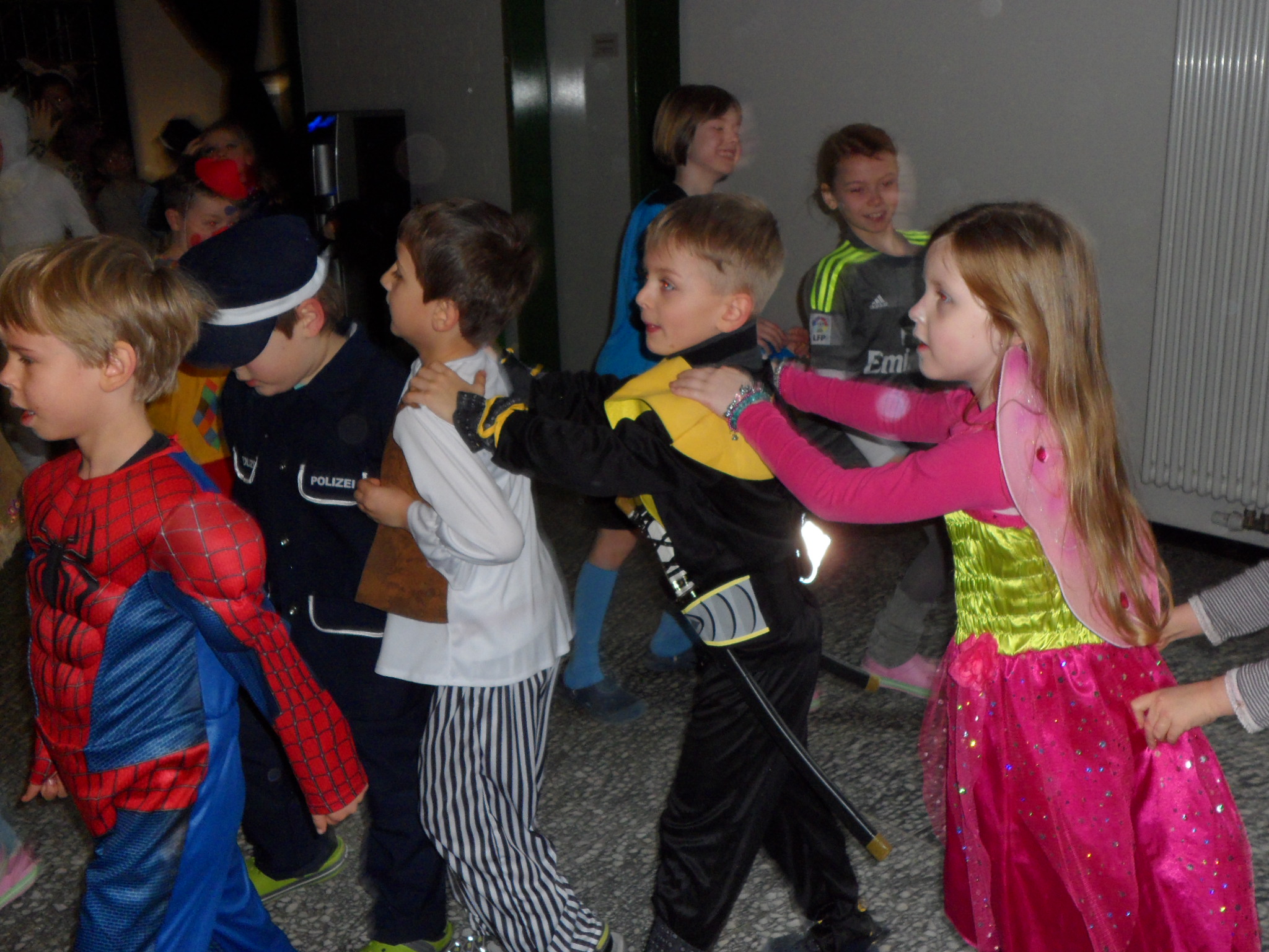 Am 8. Februar hieß es wieder HELAU in der Heinrich-Schüren-Schule und jede Menge Prinzessinnen, Cowboys, Indianer, Tiere und andere tolle Wesen und Figuren brachten ordentlich Stimmung in die Schule! Neben verschiedenen Aktivitäten in den Klassenräumen gab es leckeres Essen und eine riesige Polonaise durch die ganze Schule. Anschließend wurde ausgelassen in der Aula getanzt und gesungen. Außerdem konnten sich die Kinder in der Sporthalle mit Kleinmaterialien und in einer speziell aufgebauten Bewegungslandschaft austoben. Insgesamt war es wieder ein gelungener Tag in der Schule, bei dem alle viel Freude hatten.