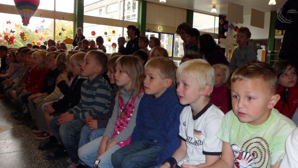 Nun war es endlich soweit. Den Erstklässlern und den Kinder des Schulkindergartens wurde in einer kleinen Feierstunde von den „Großen“ in Musik- und Theatersequenzen vorgestellt, was es mit dem Schulversprechen auf sich hat. Vier einfache Regeln, mehr brauchen wir nicht, damit sich alle Menschen in unserer Schule wohlfühlen.