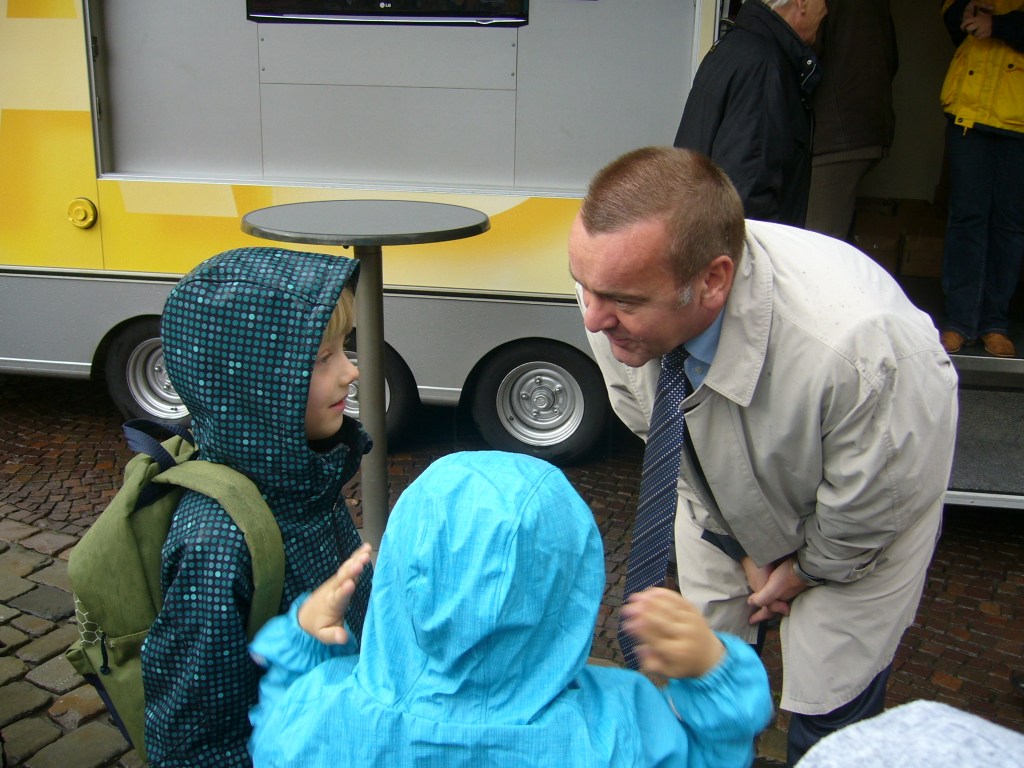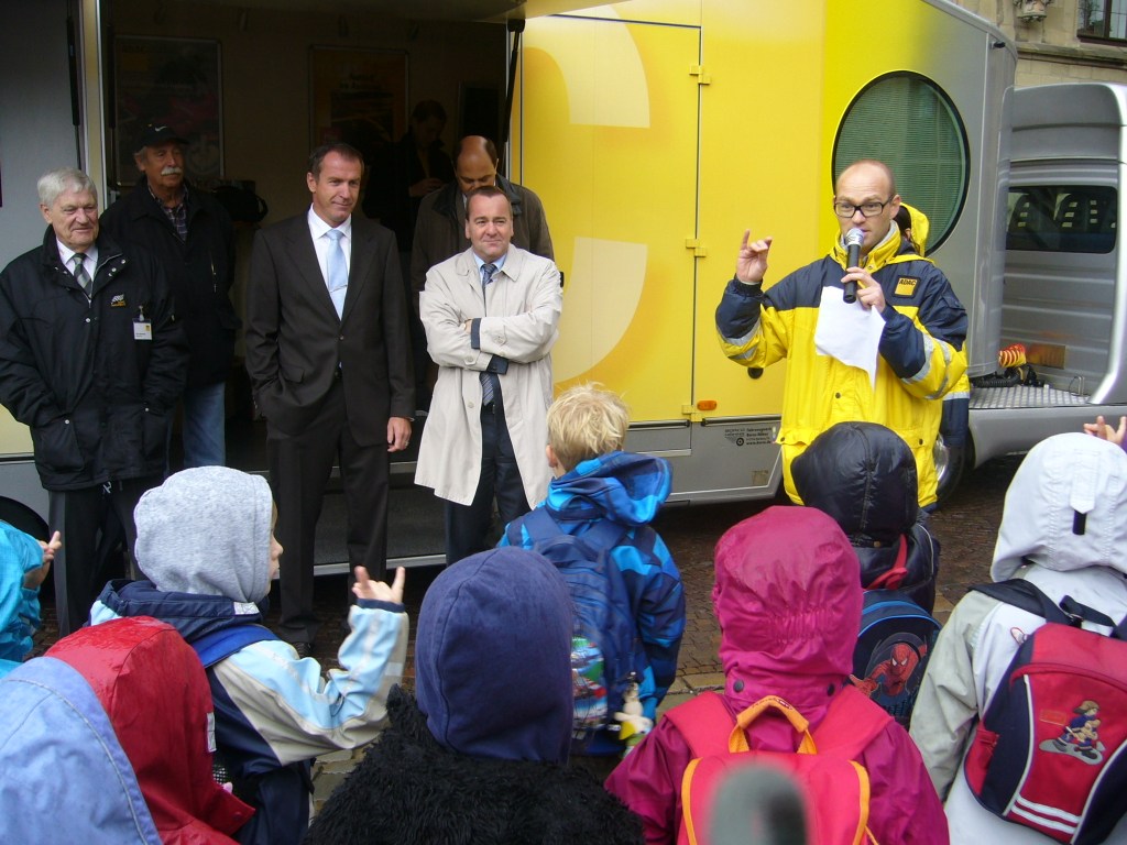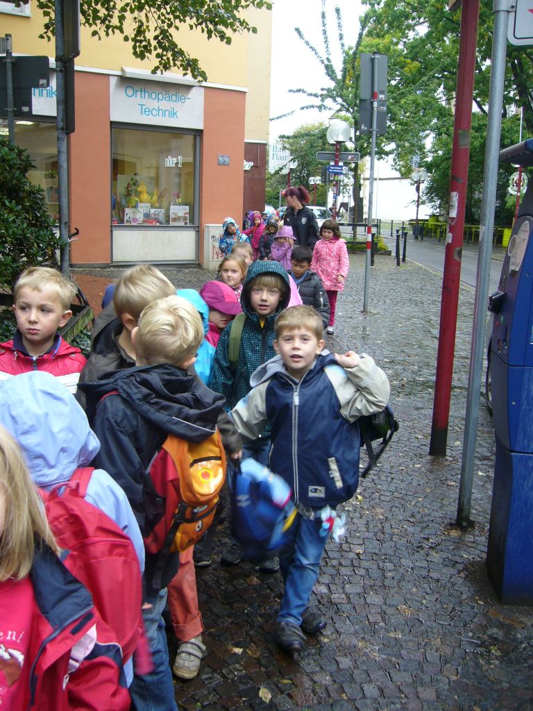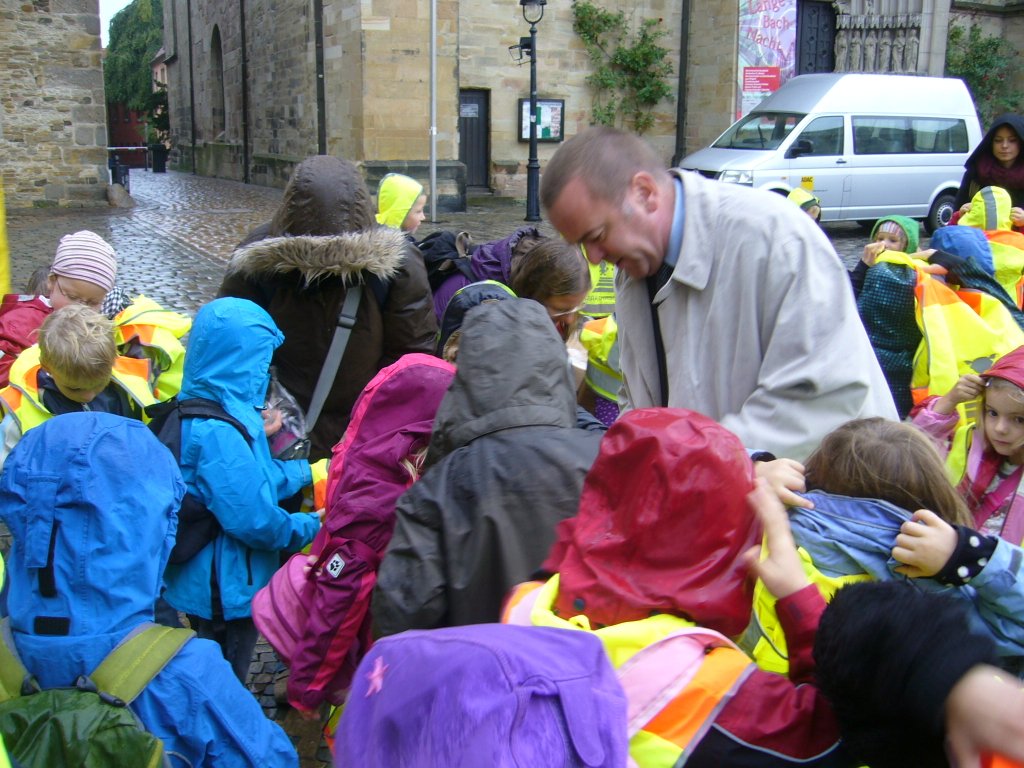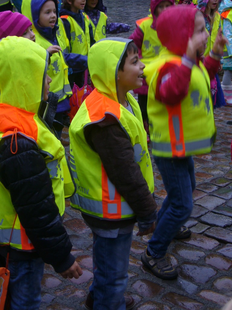 Kurz nach der Einschulung ging es für die 1a und 1b auf einen Ausflug. Unsere gemeinsame Fahrt mit dem Stadtbus war die erste spannende Aktion. Vor dem Osnabrücker Rathaus warteten wir dann, bis der Oberbürgermeister kam. Er verteilte gemeinsam mit Vertretern vom ADAC an uns die Sicherheitswesten. Anschließend durfte noch jedes Kind vorm Rathaus einen Luftballon steigen lassen.