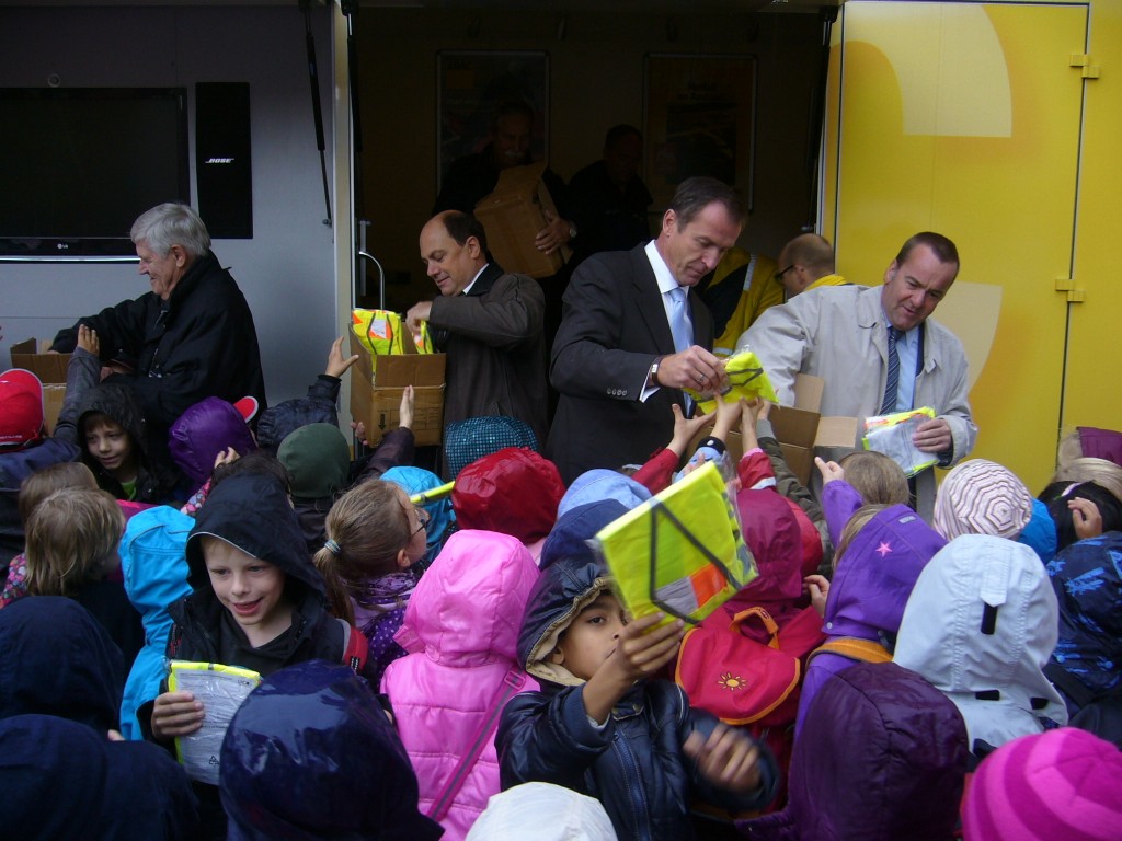 „Es ist wieder soweit: Die Schule beginnt und mit ihr die dunkle Jahreszeit. Der ADAC macht es sich auch dieses Jahr wieder zur Aufgabe, die Sicherheit der Jüngsten im Straßenverkehr zu verbessern. Bundesweit werden 750 000 ADAC Sicherheitswesten an 16 500 Schulen verteilt.
