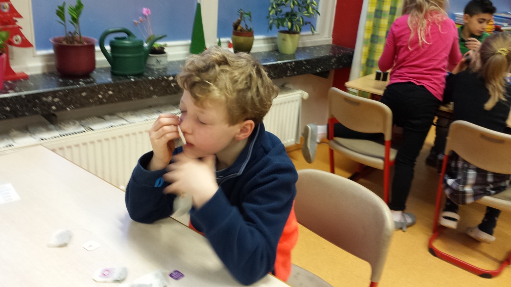 Im Dezember standen in den zweiten Klassen die Sinne im Fokus. Die Kinder lernten nicht nur die Sinne und deren wichtige Organe theoretisch kennen, sondern konnten sie auch in einem Stationenbetrieb selbst erfahren und ausprobieren. Es wurden beispielsweise mit einem Partner Teesorten errochen, Bilder und Gegenstände erfühlt, verschiedene Lebensmittel erschmeckt und Stimmen und Geräusche erhört. Die SchülerInnnen waren erstaunt, was die einzelnen Sinne alles können.