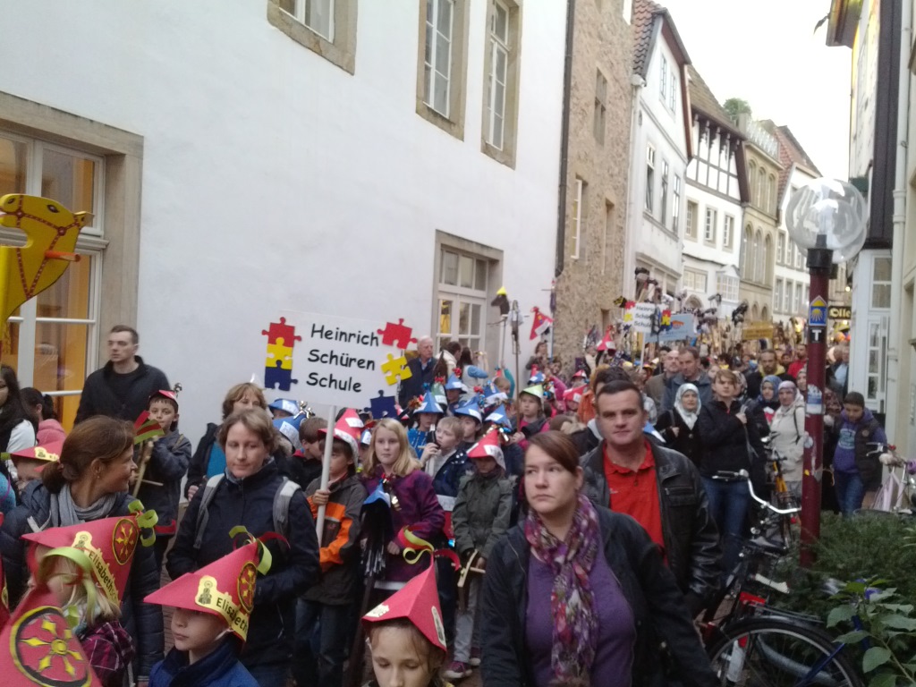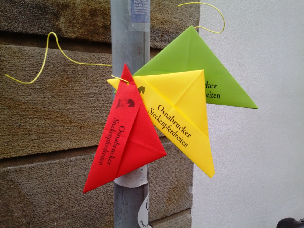 Das gibt es nur in Osnabrück, wenn im Oktober der Friedenstag gefeiert wird, der an die Vorankündigung des Westfälischen Friedens erinnert. Dann reiten alle Kinder aus den vierten Klassen auf ihren STECKENPFERDEN zum Rathaus. Unsere Kinder als Botschafter für den Frieden.
