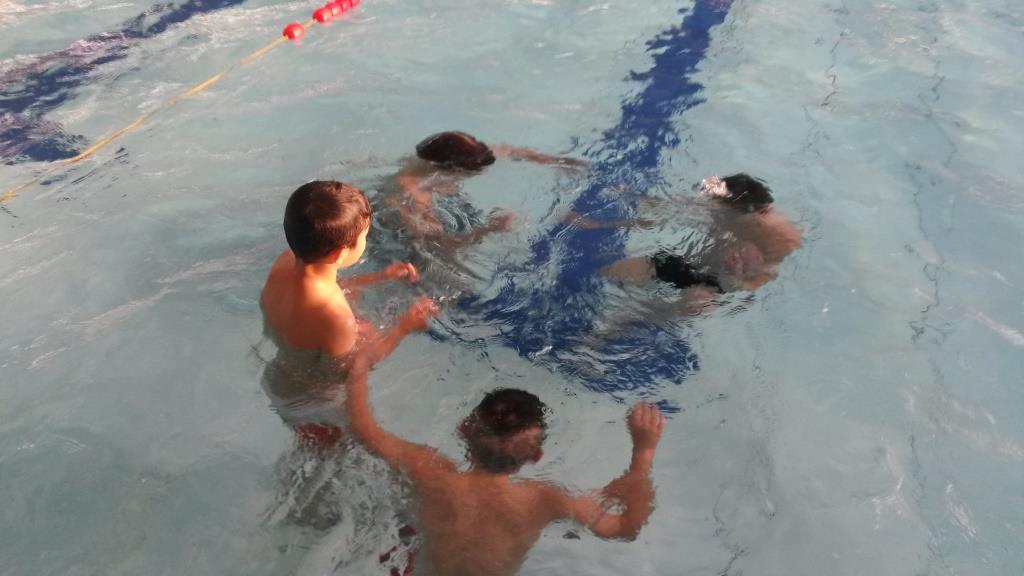 3a 14/15 gra26. November 2014 In den ersten Wochen gab es verschiedene Übungen zum Tauchen und zum Auftrieb/Sinken im Wasser. Heute haben wir das Ausatmen im Wasser geübt und anschließend haben sich die Kinder unter Wasser in Kleingruppen Lieder vorgesungen und erraten.
