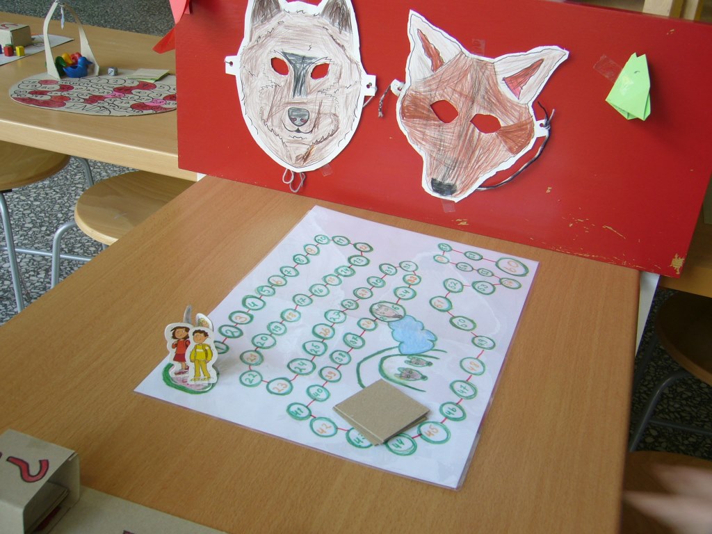 In Deutsch: Wolfsmärchen „Der Wolf und die sieben Geißlein“, „Rotkäppchen und der Wolf“,