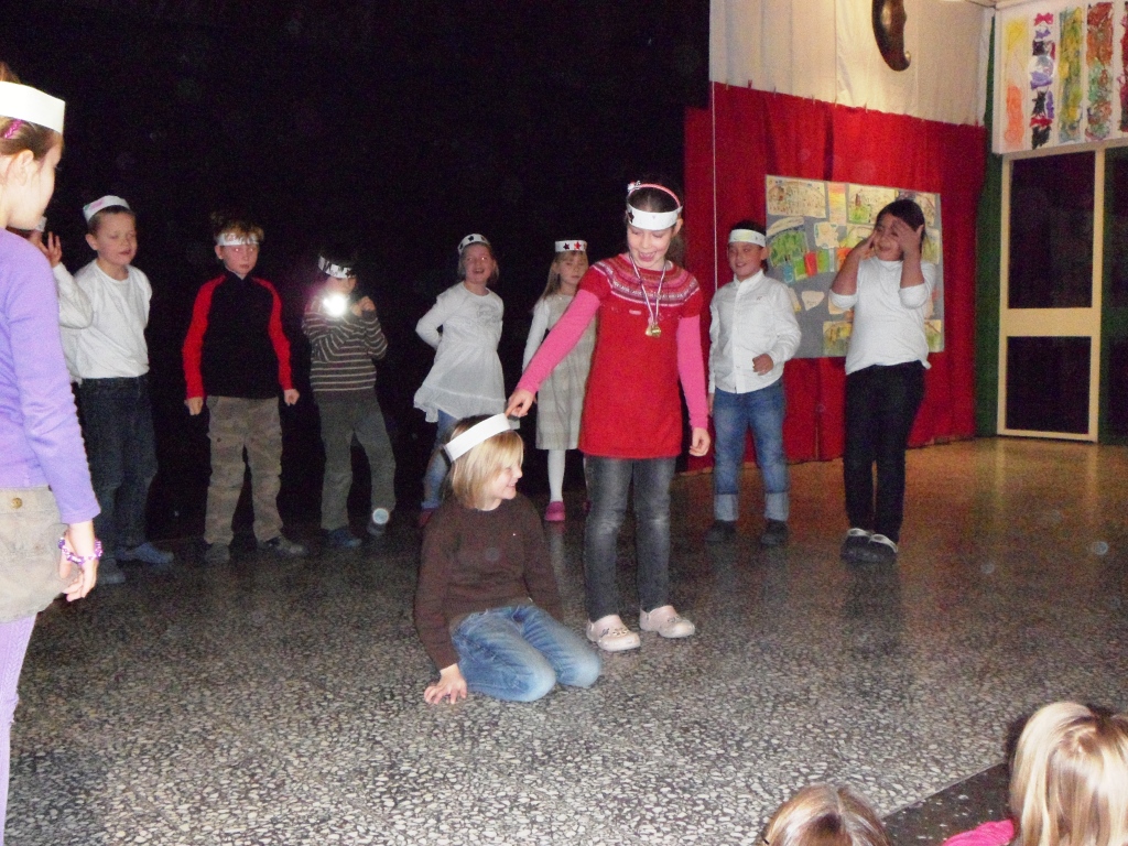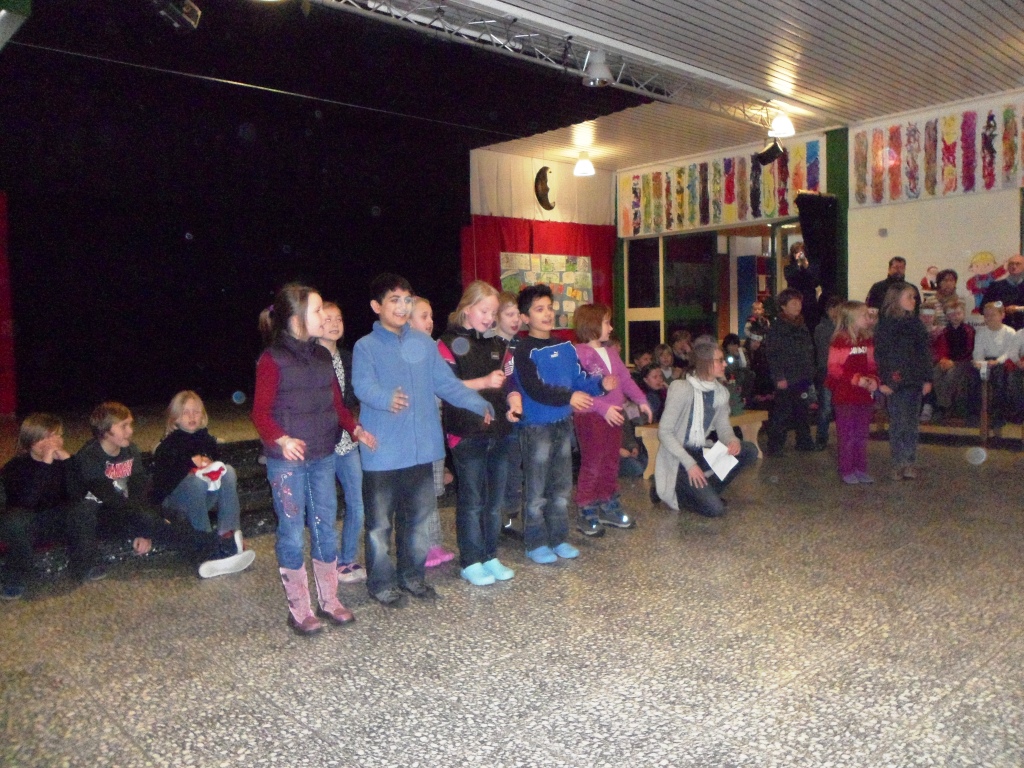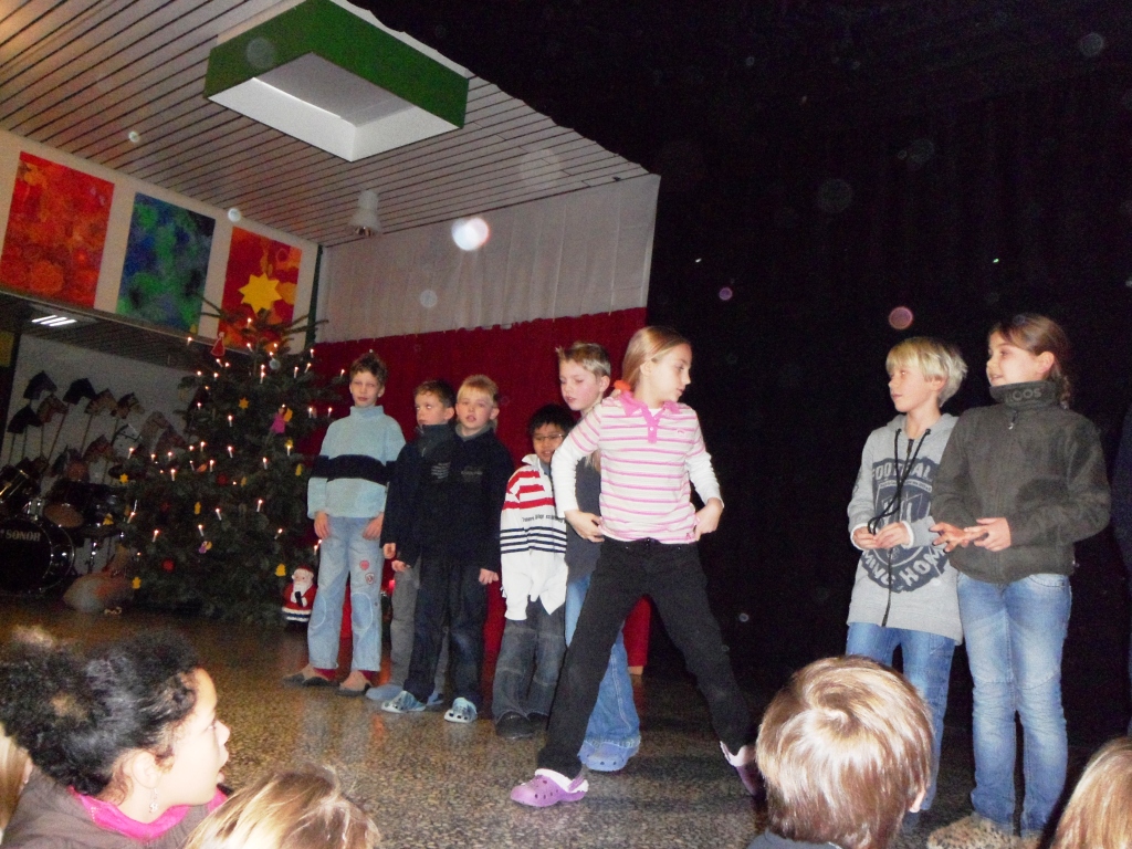 unsere Weihnachtsfeier am letzten Schultag, bei der alle Klassen etwas vorführten. Vom besinnlichen Lichtertanz, über witzige Weihnachtsgeschichten und -gedichte, bis zum gerappten „Von drauß‘ vom Walde komm ich her“, war alles dabei. Also dann: