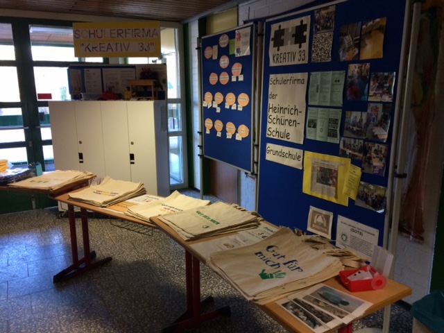 Schülerfirma gra3. März 2017 Schulkonzert in der Heinrich-Schüren-Schule ! Während der Pause konnten die Mitarbeiter von KREATIV 33 wieder einige Stofftaschen und Handtücher verkaufen.