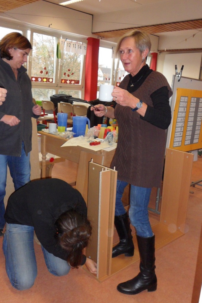 Es ist vollbracht! In einer großartigen gemeinsamen Aktion der Schulgemeinschaft wurden mit den Geldern aus unserem Sponsorenlauf im September unsere Klassenräume auf Vordermann gebracht. Einen ganzen Nachmittag lang wurde gemalert, gehämmert, geschraubt, gesägt, zusammengebaut, aufgehängt, mit Kaffee und Keksen versorgt und vieles mehr. Das Ergebnis nach einem arbeitsreichen Tag sind schöne Klassenräume mit einer freundlichen Lernumgebung, in denen das Lernen und Lehren gleich viel mehr Spaß macht. Ein ganz herzliches Dankeschön noch einmal an alle HelferInnen und natürlich den Förderverein und das Planungsteam.