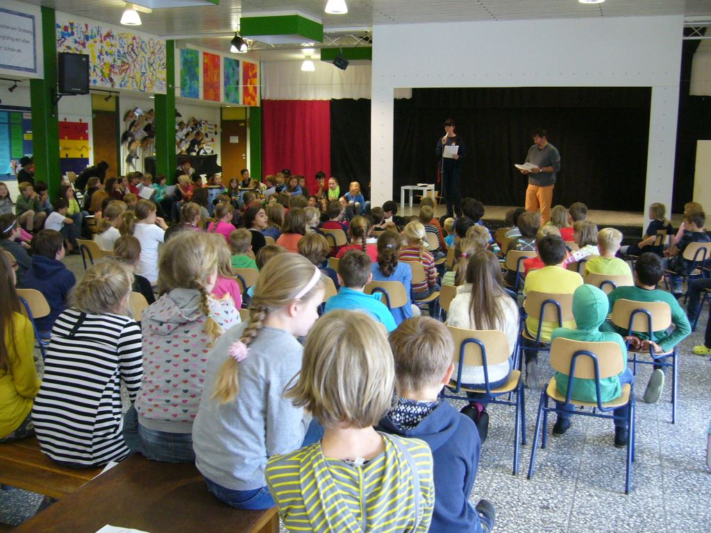 Am Dienstag vor den Sommerferien trafen sich alle Heinrich-Schüren-Menschen in der Pausenhalle.