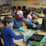 Am 20.12.2016, dem letzten Schultag in diesem Jahr, ging es ganz gemütlich in der Schule zu. In den ersten beiden Stunden wurde in den Klassen gebastelt, gesungen, gefrühstückt, gespielt, vorgelesen und einige Filme geschaut. In der 3. und 4. Stunde gab es eine unterhaltsame, besinnliche und fröhliche Weihnachtsfeier mit Kindern, Lehrkräften, Mitarbeitern und Eltern in der Aula. Neben dem gemeinsamen Singen konnten hier auch einzelne Aufführungen der Klassen bestaunt werden. Abschließend tanzte die gesamte Schule ausgelassen zu „Feliz Navidad“. So kann das Jahr 2016 ausklingen und alle können entspannt in die wohlverdienten Ferien starten.